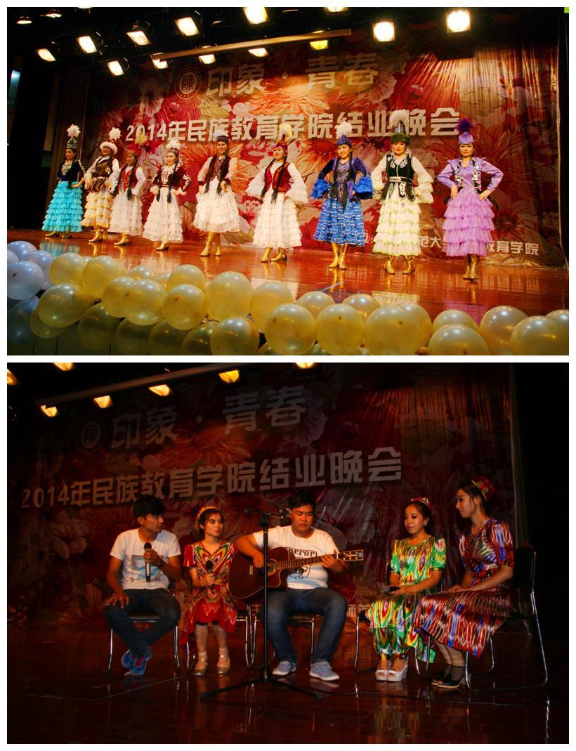 2014年威廉希尔williamhill中文《印象·青春》结业晚会是对这一年学习生活的总结。此次参加的公司老师有冯建新、窦文阳、成珊娜、段亚绒、卢静,还有一位远道而来的威斯康辛大学马格瑞特·霍金斯(Margaret Hawkins)教授。伴随着《祝福》的节奏,美丽热情的哈萨克族姑娘为师生们带来了最美好的祝福,她们的眼里饱含着深情与眷恋,饱含着对师大的希望与祝福。此刻,不同的民族聚集在一起,和谐而又美好,热烈的掌声经久不息,晚会在欢快的气氛中进行着,整个观众席上,过道里都站满前来观看的路人和员工。随后是预科一班的11位同学表演的动感现代舞《CHU》,将现场的气氛一下拉上了高潮。之后维吾尔族节目歌伴舞《花儿》和歌曲独唱《爱要坦荡荡》让场内持续高温,欢呼声不断。