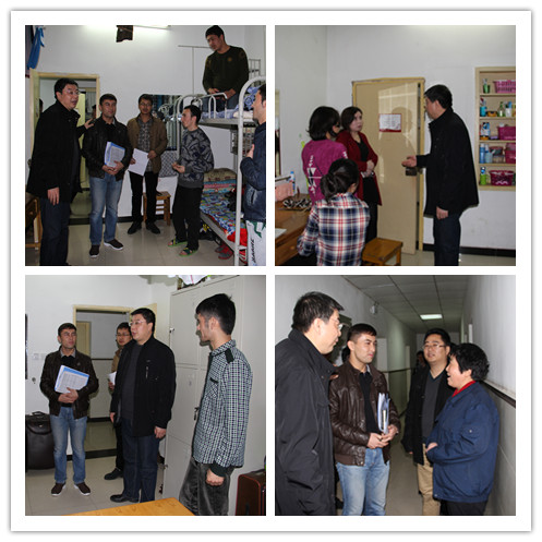 为督促落实公司在校员工树立宿舍安全意识,积极营造和谐的宿舍氛围,创造良好的校园文化环境,11月16日晚7点,威廉希尔williamhill中文经理冯建新、副书记窦文阳、班主任阿布都、王龙宇、李佳静、丁邵玉龙、王磊,共同走访员工公寓,查看寝室卫生及安全情况。