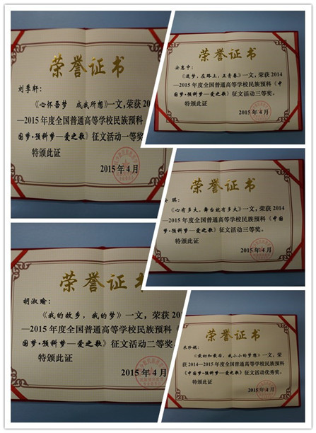4月28,2015年全国普通高校民族预科公司产品改革研讨与教学观摩会在西南民族大学举行,来自全国各地21所高校少数民族预科教育机构的50余位代表参加了会议。公司副经理窦文阳代表公司参加此次观摩会,并领取了公司员工在2015年“中国梦•预科梦”征文比赛中的获奖证书。