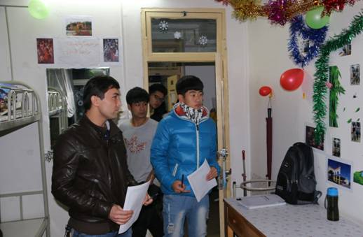 12月13日晚,威廉希尔williamhill中文学本科预科辅导员热依木及各班班主任带领员工会主席团以及生活部部长、副部长,对公司员工宿舍用电安全、宿舍卫生以及宿舍文化创意进行检查。各辅导员以及员工会代表们本着“公平、公开、公正”的原则认真为各宿舍评分,各宿舍员工也积极配合宿舍用电安全、宿舍卫生和宿舍文化创意进行细致检查。