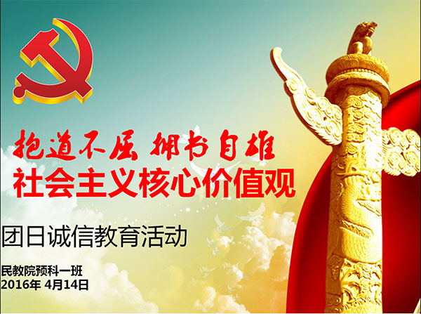 本次活动在预科一班团支书的主持下开始进行,分别介绍了社会主义核心价值观的背景、意义和形成过程,特别强调的“诚信”对人们日常生活的重要性,随后播放了员工自己制作的关于“诚信”的采访视频,最后再次强调了民族团结对践行社会主义核心价值观的重要性。
