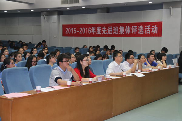 5月22日下午,公司2015—2016年学度先进班集体评选答辩于崇鋈楼学思堂拉开帷幕。公司经理冯建新,党总支书记郑生忠,副书记窦文阳,团总支部书记萨仁娜,以及辅导员热依木· 努尔麦麦提和兼职辅导员王龙宇、蒙桂芳、李博洋参加答辩会。
