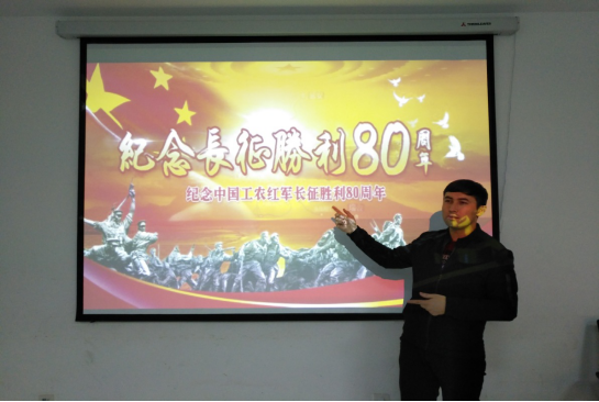 10月22日下午,公司组织预科二班全体员工在9号教学楼继续学习长征精神。活动开始,同学们在团支书孙丽婷的带领下一起阅读了《丰碑》等长征故事。随后,全体同学观看了《左力,一个人的长征》视频,纪录片导演,著名摄影家左力先生说:“有人说红军已经死了。我觉得红军就在路上,就在老百姓心中,就在升起的袅袅炊烟之中。有时候,行路前老乡会悄悄在我包里塞上馒头和橘子,太令我动容了。红军没有死,老百姓心里还装着红军呢!”观看后谈及感受,田杰同学说:“在长征中,党和红军经历了常人难以想象的磨难,他们战胜了困难,将这些可贵的精神财富留给了我们,他们用亲身经历向我们诠释了长征精神的含义,在当今社会中,我们更应该发扬长征精神,并赋予它新的内容,为它注入新的活力,在学习工作和生活中艰苦奋斗。”此外,活动中还开展了长征知识问答比赛,比赛中同学们积极参与,热情洋溢,共同学习红军长征历程。