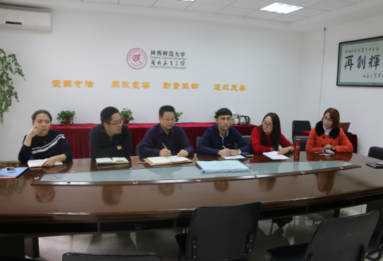 11月14日下午2:30,在雁塔校区教学六附楼305会议室,公司学工组召开本学期第四次员工工作会议。公司党总支书记郑生忠、副书记窦文阳、团总支书记萨仁娜、专职辅导员热依木、兼职辅导员刘雅丽和新疆内派服务管理教师迪丽努尔和赵雪艳参加了会议。