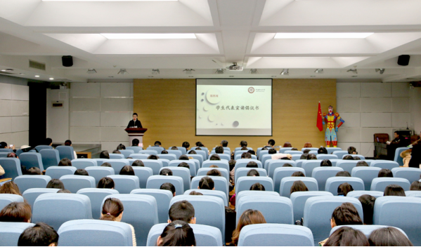 在手工作品展示环节中,预科生展示了通过对废旧物品循环再利用而制作的收纳盒、纸椅、爆米花机、师大三维模型、婚纱礼服、机器人等作品。独具心思、制作精致的手工作品受到现场嘉宾和同学们的一致好评。最后,启动仪式在师生签名、合影留念中圆满结束。
