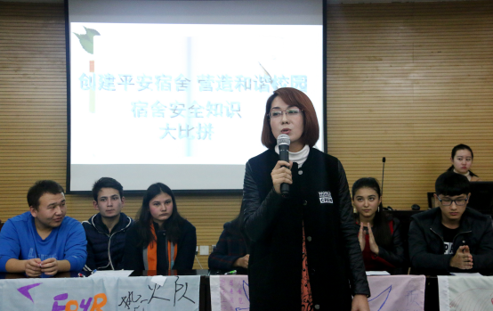 迪丽努尔老师对此次竞赛做了总结讲话,她说宿舍是在校员工三分之二的活动场所,通过看似简单但内容非常丰富的宿舍安全知识大比拼来提高大家自身的安全意识,希望大家共同营造平平安安的宿舍生活、快快乐乐的校园学习生活。