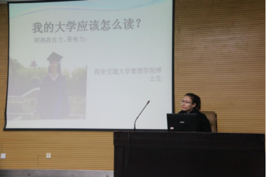 阿热孜古力老师深入浅出的分心和有指导性的建议不断引来现场师生的热烈掌声。讲座最后,同学们就自己大学学习和生活中遇到的问题积极提问。一位维吾尔族族预科生说:“我总感觉赶不上班里的其他员工,很自卑。”老师语重心长地教会同学们如何克服自卑心理以及如何克服孤独等实际问题的解决方法,令同学们信心倍增。另一位同学说,阿热孜古力老师在讲座中提到的80/20法则令他印象深刻,我们都应科学的管理时间,规划事情的优先顺序。人性中的惰性不断将我们拉向堕落的深渊,而理想与规划正是引领我们向上的牵引力。员工处挂职干部伊尔夏提老师强调作为一名当代的老员工,如果不知道自己想要做什么、没有合理的规划和明确的目标是不能在这个飞速发展的社会中占有一席之地的。希望同学们在职业生涯规划的路上:树立职业精神,建立目标意识、规划意识,学会学习、做事、做人。