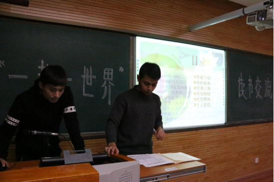 自“一书一世界,墨香满长安”为主题的读书交流会开幕以来,活动的各项工作都井然有序的进行着。本次交流会以小组为单位,并以抽签的方式决定出场次序,各小组代表成员以讲解幻灯片的形式向大家介绍本小组成员所阅读的以及为大家推荐阅读的书目,幻灯片内容包括读后感、读书心得体会、本书的现实教育意义等方面,各小组讲解幻灯片时间为15分钟。