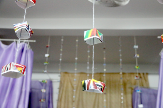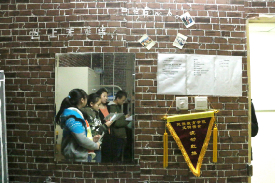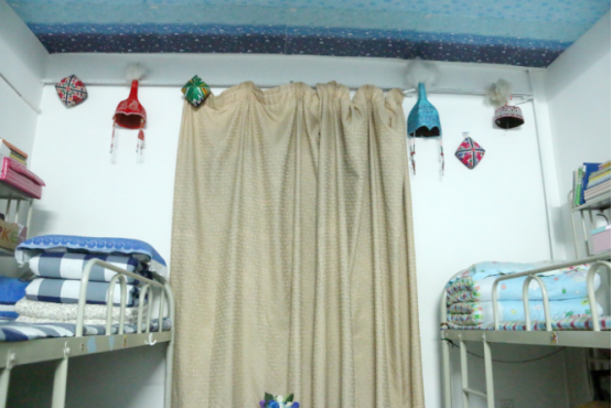 评审组首先来到12号男生员工宿舍楼进行观摩,接受观摩的部分宿舍代表向大家介绍了其寝室的布置方法及亮点,个别男生宿舍将寝室将墙壁一角制作成愿望墙、文化天地栏等,有的还贴了各式的壁纸,铺上了各样的地毯,使寝室成为“星球世界”、“运动天地”等,整洁干净、通风良好、富有创新的男生宿舍使各位评审老师刮目相看。接着评审组来到2-3号女生宿舍楼进行观摩,女生宿舍与男生宿舍文化差异甚大,一些手工艺妆品、本土文化特色充满温馨的寝室,废弃饮料瓶纸做的书架、小纸帽做成的吊链,宿舍门上的贴花和装饰都充满民族情怀。从这些宿舍装饰中,流露出同宿舍不同民族成员之间浓厚的感情和同窗友谊。