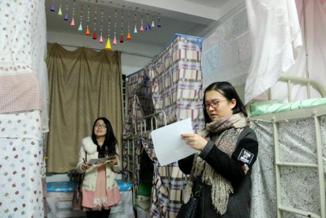 12月21日晚七点,公司如期进行以“展民族魅力,建和谐寝室”宿舍文化节活动之“室全室美”活动的第三轮评比环节,参与评审的有新疆内派服务管理教师迪丽努尔、赵雪艳、辅导员热依木、兼职辅导员蒙桂芳、刘雅丽以及员工会生活部的全体成员。参加评比的有全体少数民族预科生宿舍。