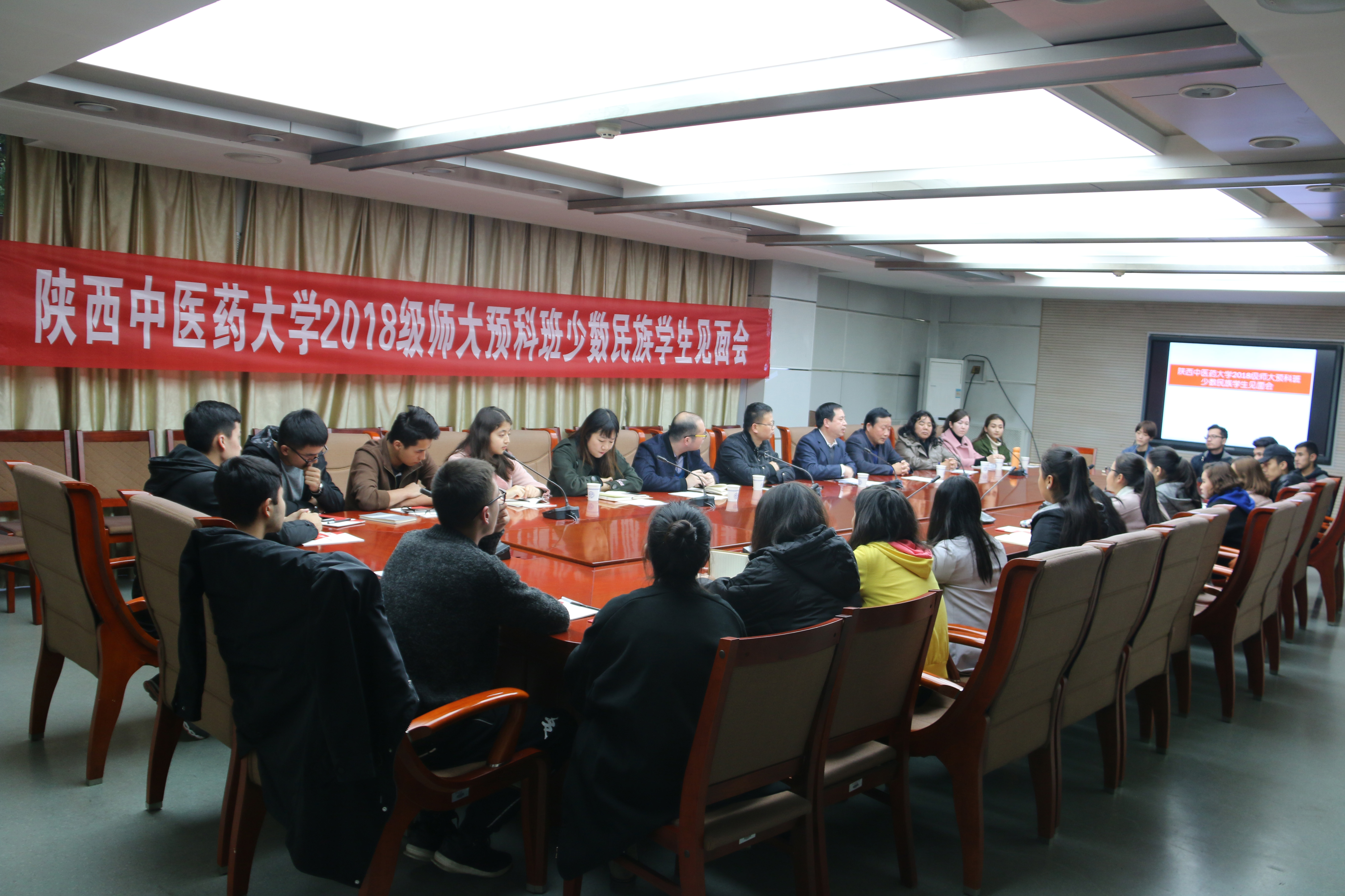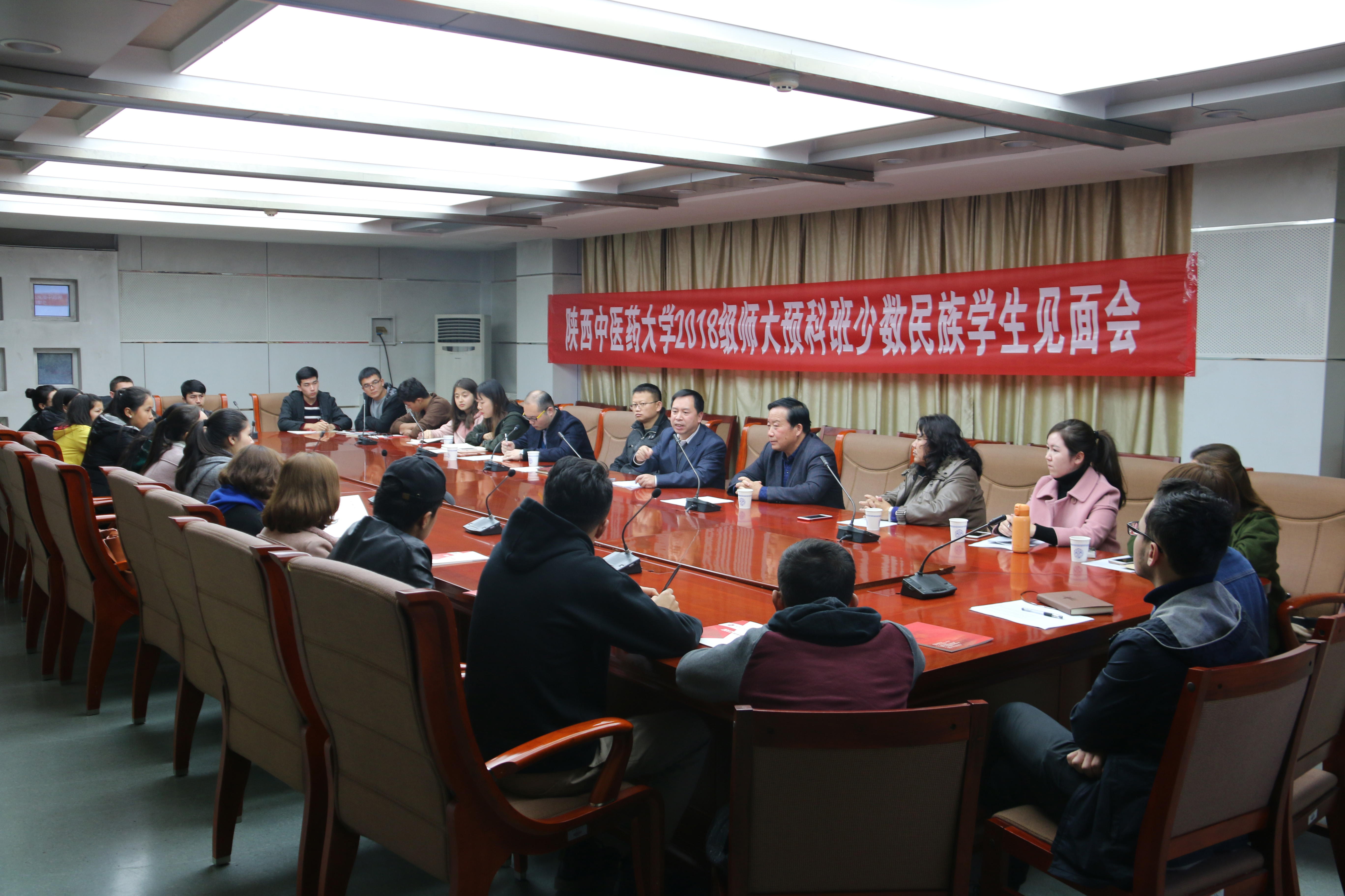11月15日下午,陕西中医药大学教务处处长杨景锋,学工部副部长杜国辉一行到公司与2018级新疆籍少数民族预科班员工举行见面会。见面会由学工部副部长杜国辉主持。