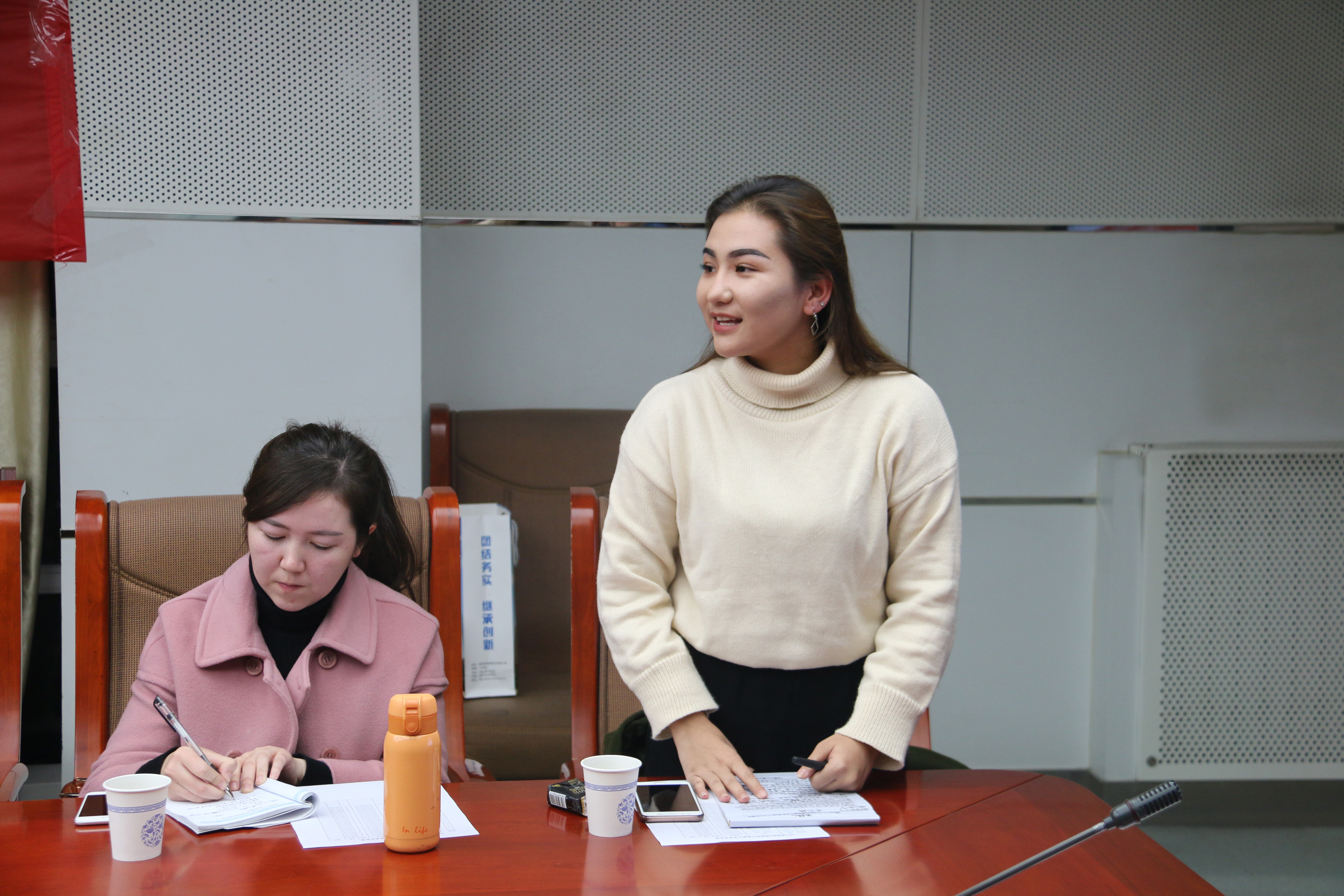 新疆内派教师门新和老师介绍了公司新疆籍少数民族在校生的学习、生活情况及存在的主要问题,希望各位预科同学能充分认识预科学习和大学学业的重要关联性,认真思考和规划好自己的老员工活,积极主动,克服困难,顺利完成学业,健康成长成才。新疆内派教师祖丽皮亚·阿不力孜老师介绍了最近她在校听课的情况,希望各位预科同学可以在预科期间重视学习,为进入大学打好基础 。陕西中医药大学员工代表临床1601班员工米热阿依·阿力木作了大会交流发言,与预科班的同学们分享了自己在陕西中医药大学的学习、生活体会,进行了热烈的互动交流。