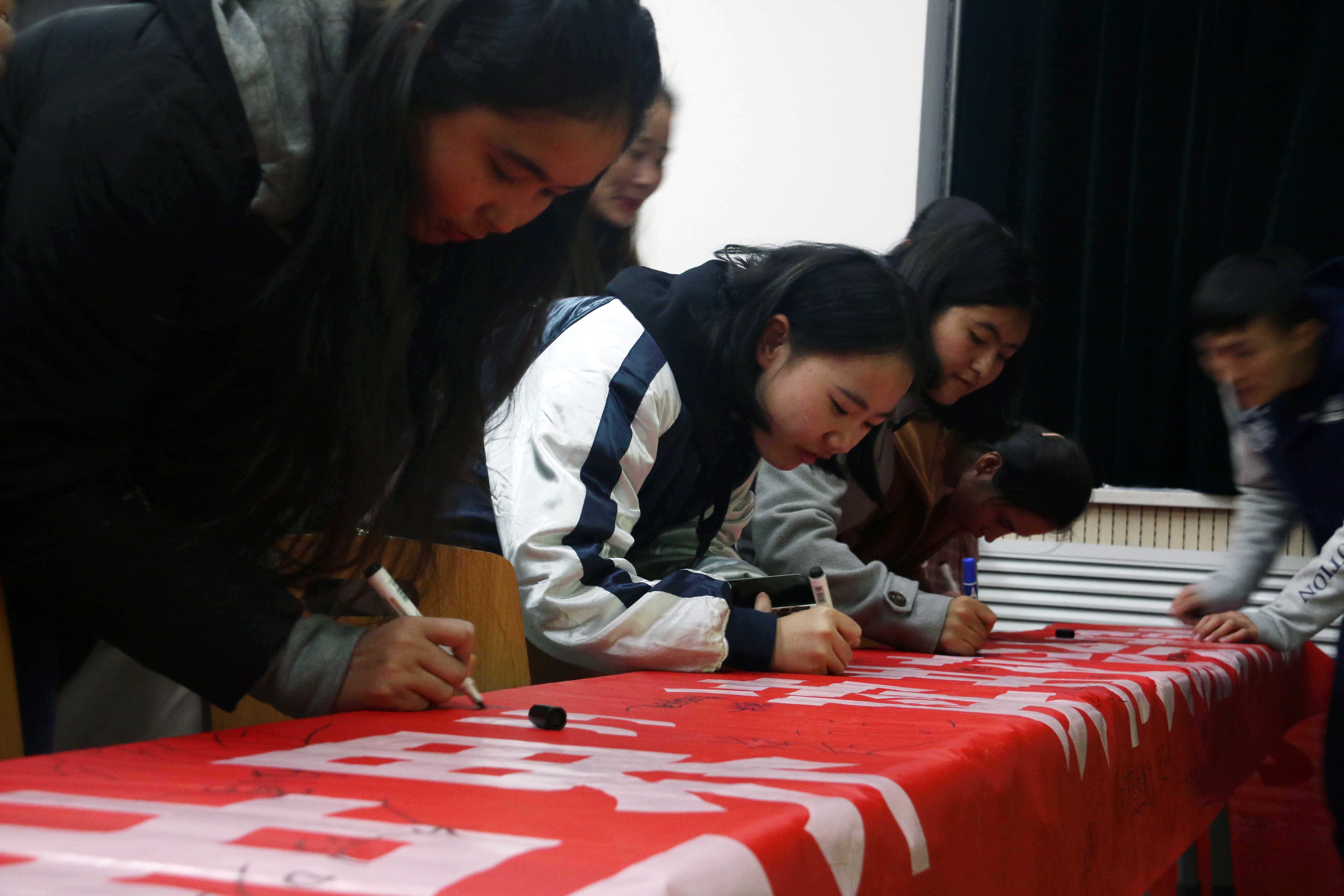 读书交流会开幕仪式秩序井然的进行,首先,主持人以播放幻灯片的方式向在场的同学们详细的介绍了本次读书交流会各负责人的分工情况及活动背景、活动意义、活动目的、活动主题等一系列关于活动的相关内容,其次,通过视频播放与同学们一起回顾了上一届读书交流会经过的四期精彩内容。然后,读书爱好者们用抽签的方式来分成四个小组进行交流。本次读书交流会别开生面,将分为四期举行。预计四期读书交流内容正在筹划当中,让我们敬请期待。每期读书交流会将会为表现出色、活动成绩突出的小组进行总结性表彰并颁发奖状。最后,专职辅导员热依木老师作了发言,表示对本期读书交流会活动有很大的期望,上一届读书交流会的成功举办,是同学们共同努力的结晶,大家要将这种爱读书、读好书的读书精神不断传承,在培养自身读书爱好的同时,带动身边的同学朋友一起读书,将威廉希尔williamhill中文的读书精神届届相传。同时希望负责本届读书交流会的同学们能够不断完善,丰富读书活动,不断提升读书交流会的影响力和文化品味,并预祝本届读书交流会能够取得圆满成功。开幕仪式结束后大家纷纷在主题横幅上签上了自己的名字。