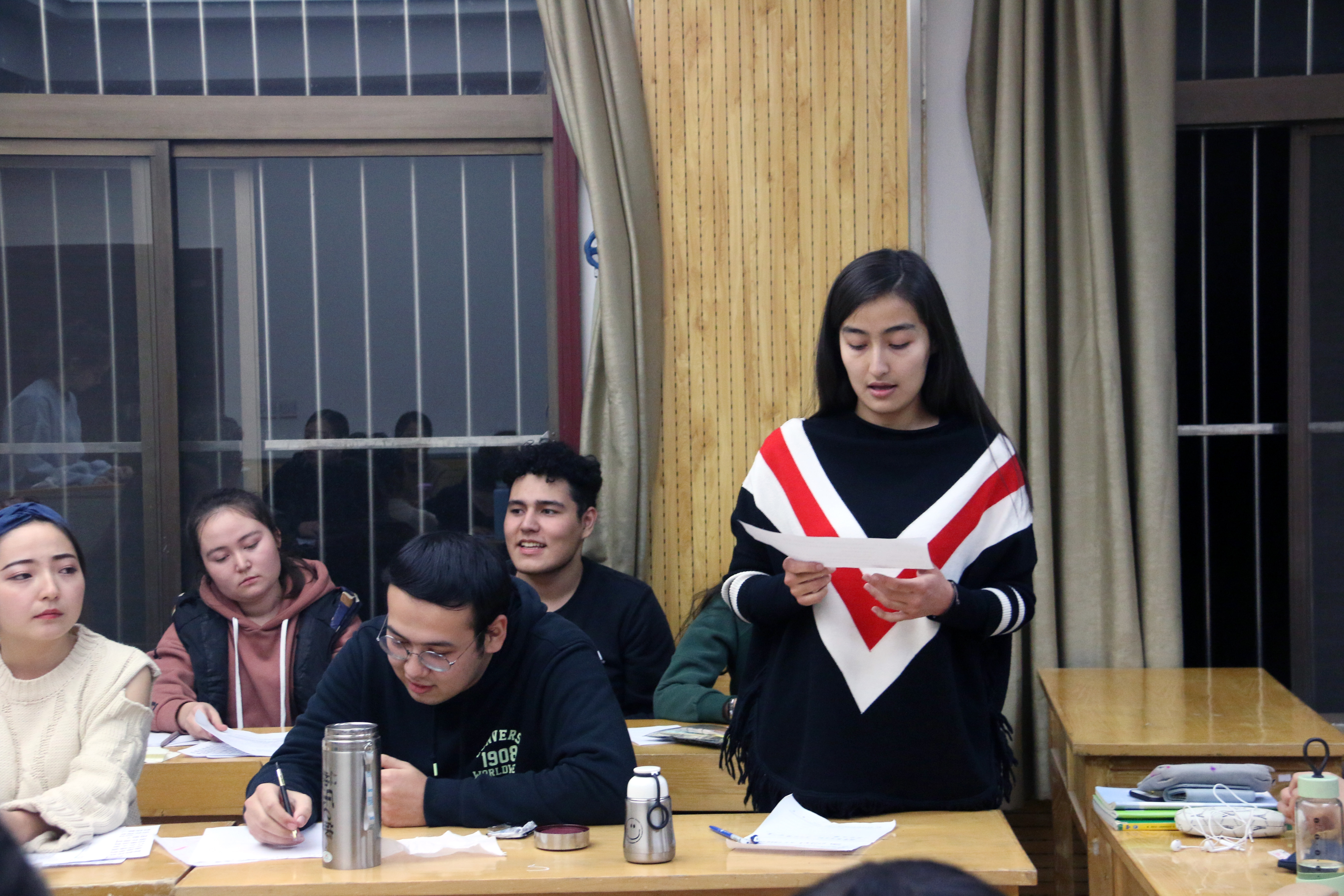 为实现我院员工团日活动的自主化、多样化、时代化,丰富课余文化生活,提高团员青年的参与热情,培养民族预科员工的思辨能力与汉语表达能力,11月29日晚上,在5号教学楼5309教室,威廉希尔williamhill中文2017级预科五班打破常规,以辩论赛的形式展开了一次精彩的团日活动。公司专职辅导员热依木老师和全班同学参加了本次活动。活动由我班团支书凯蒂亚·艾麦江同学全程主持。