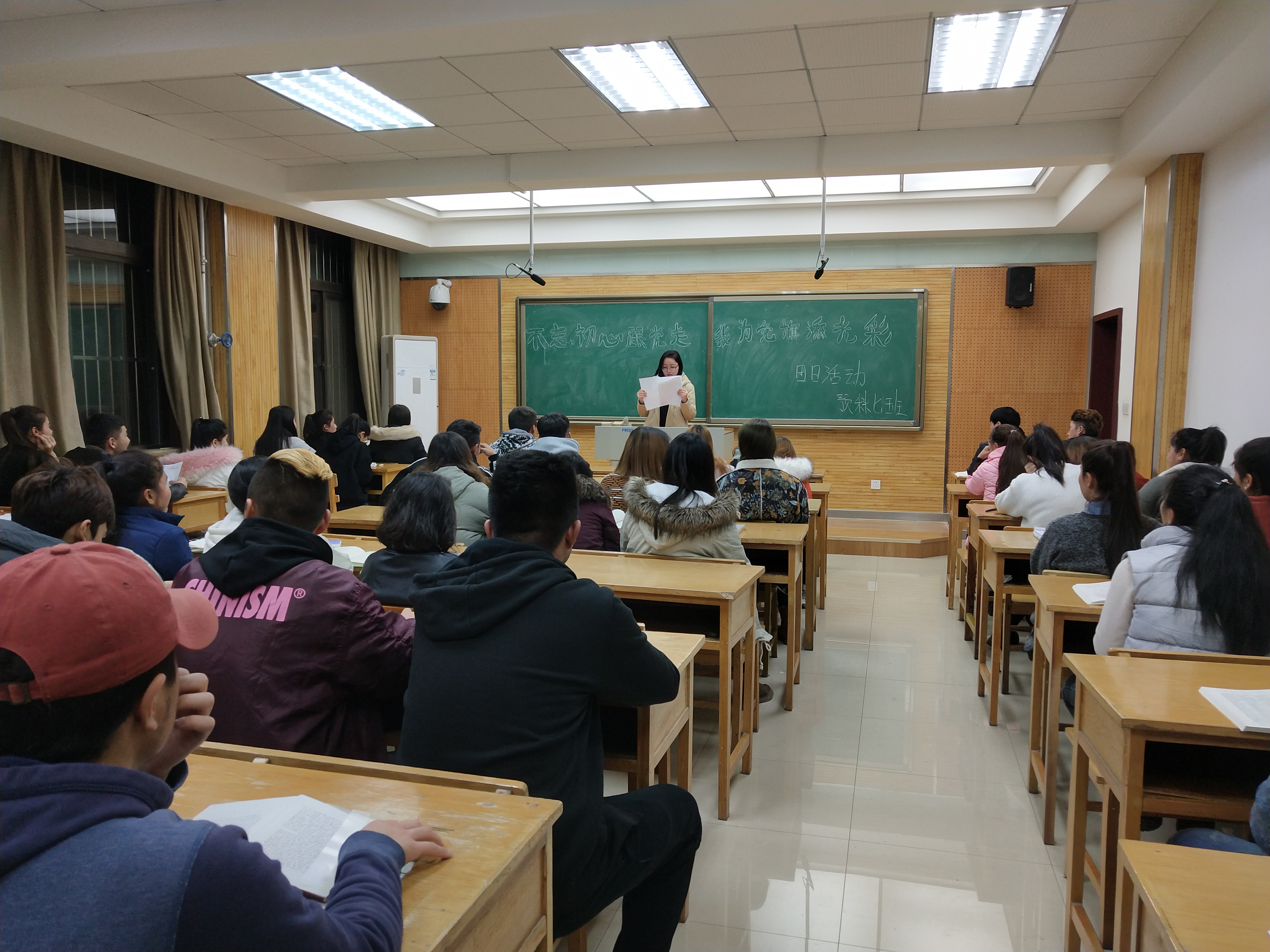 为深入学习、贯彻和落实党的十九大会议精神,加强对员工的思想政治教育,引导员工认识肩负的责任和使命,树立社会主义核心价值观,11月29日,我院2016级两年制预科班员工组织开展以“不忘初心跟党走、我为党旗添光彩”为主题的团日活动。