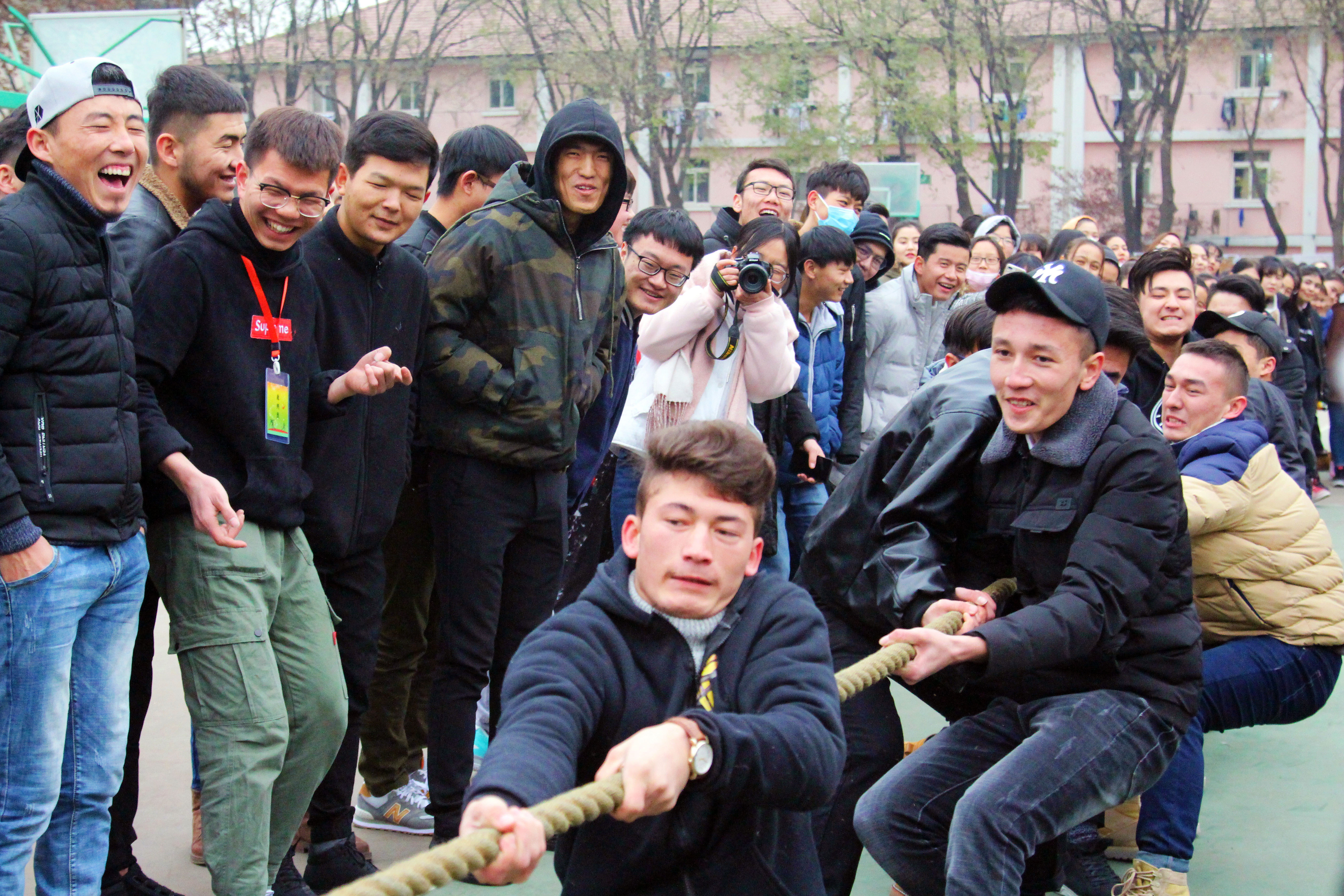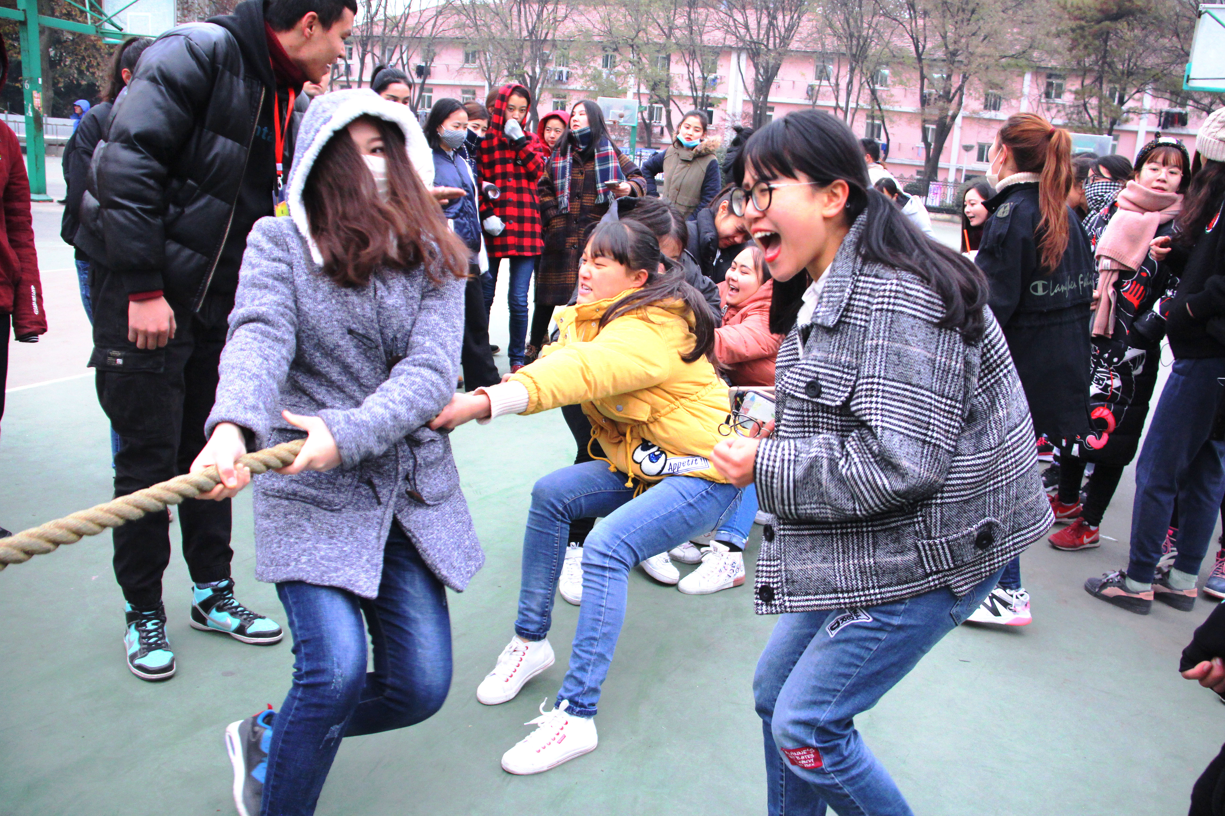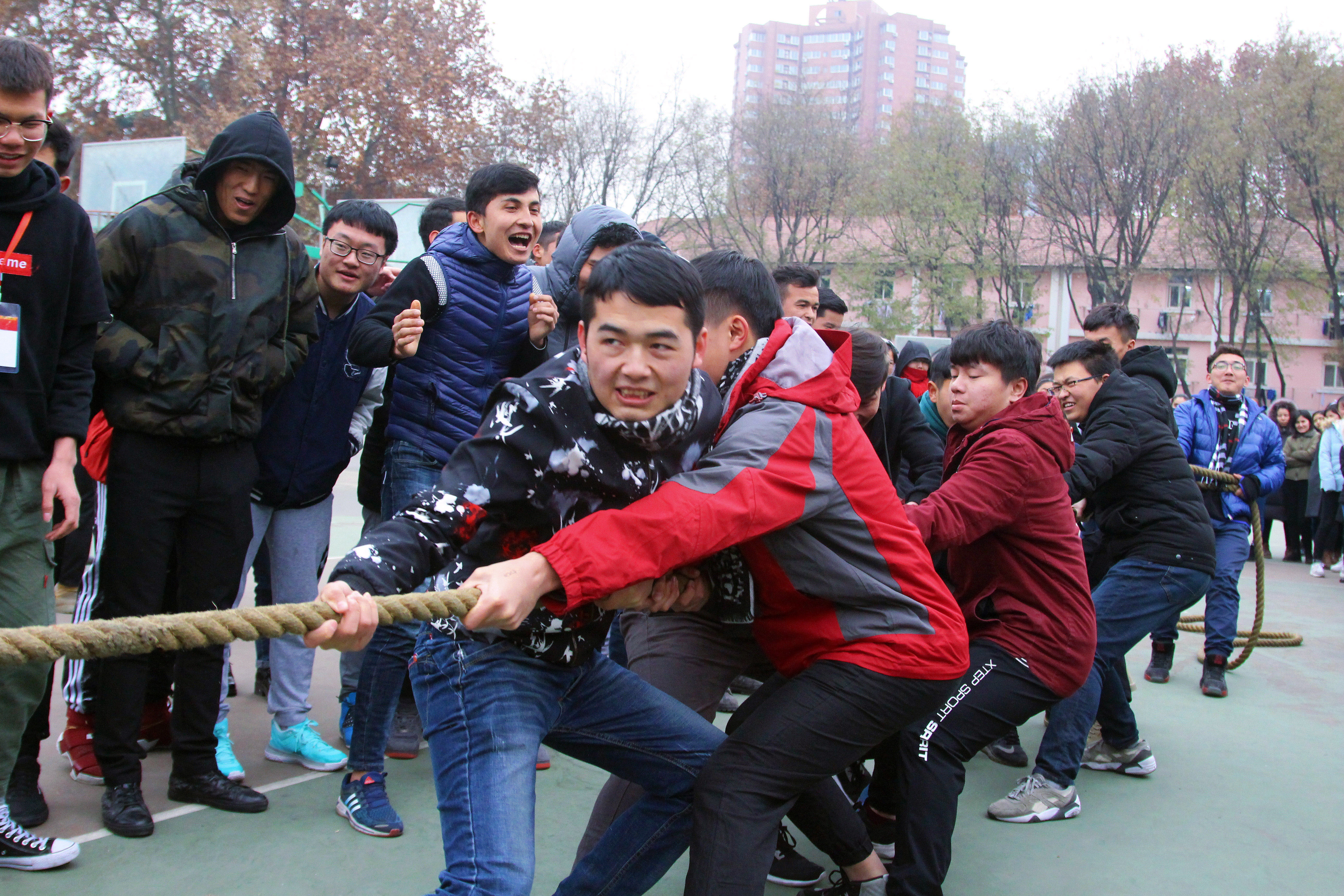 为了丰富员工寝室文化生活,加强同学们之间的交流,增进室友间的感情,促进团结向上,共同进步,12月13日下午,公司在公司篮球场举行“美美民舍 携手共进 ”为主题的拔河比赛。本次比赛是公司本学期开展的老员工宿舍文化节系列活动之一。
