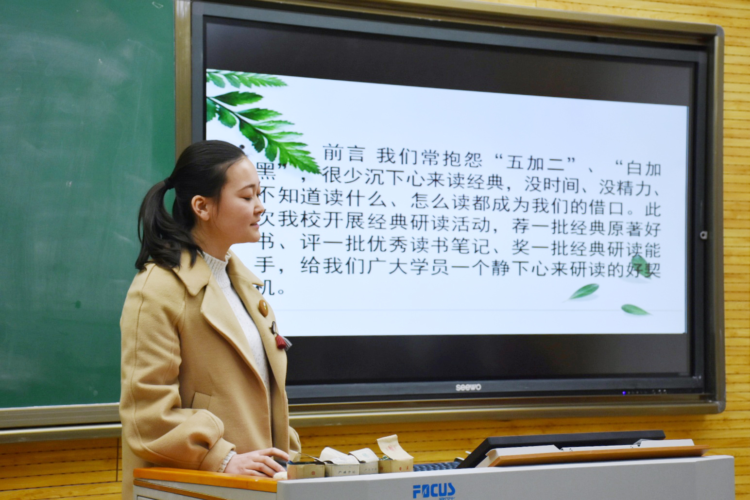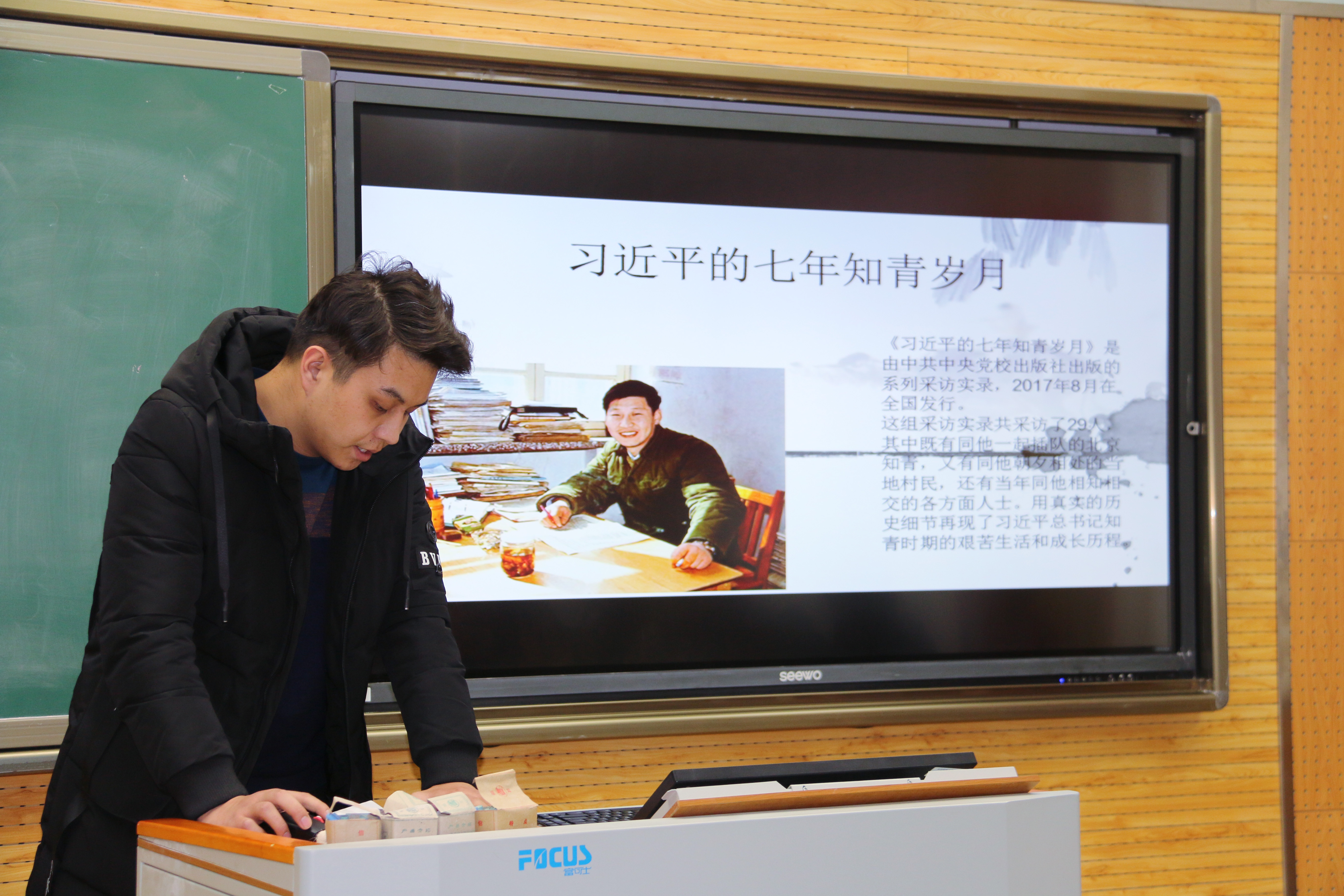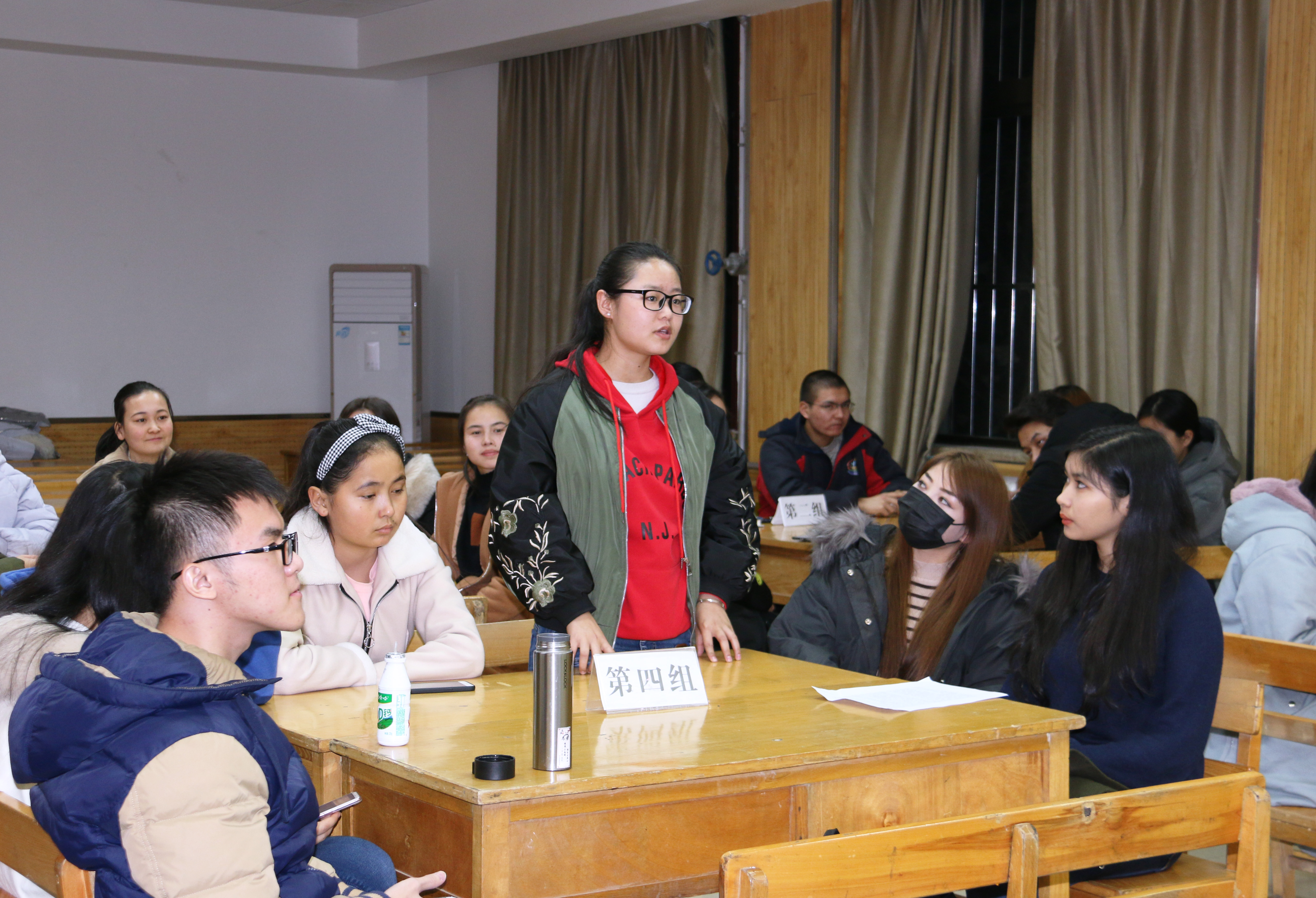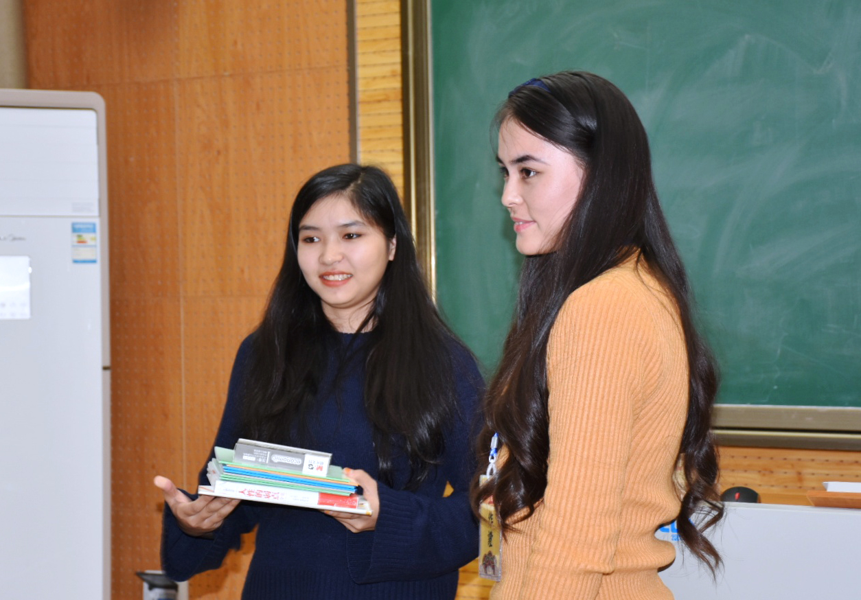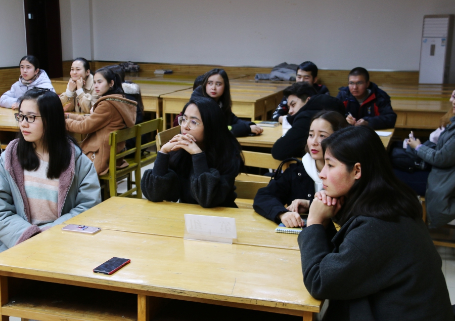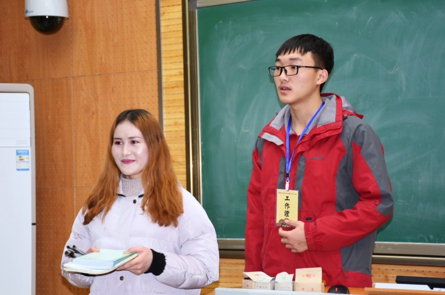 本期读书会由玛合巴丽同学主持。读书会上,主持人向同学们介绍本次活动的规则与评分标准,随后四个小组的成员开始按顺序进行角逐。在活动中各组同学精心准备,表现精彩,把活动推向一浪浪高潮。第一小组的同学语言生动,吐字清晰,通过制作精细的ppt向同学们展示了习近平同志七年知青岁月的点滴与自己的阅读心得。第二组的同学则善于以口语化的语言拉近观众与书本的距离,期间多次运用举例论证向同学们说明当代青年该如何建设美好中国。第三组同学另辟蹊径,并不拘泥于书中内容,而是积极与观众互动,通过与观众的沟通不仅宣传此书而且还感染了观众。第四组同学则很好地将个人感受与书本内容结合起来,使观众更为直观地感受到习近平同志青年时期正直勤奋的良好作风。
