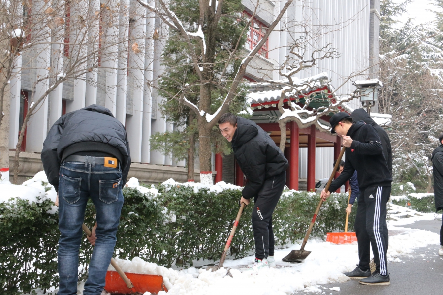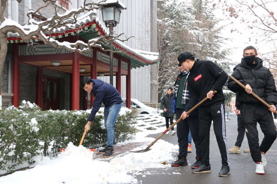 威廉希尔williamhill中文组织员工骨干开展清扫校园积雪活动