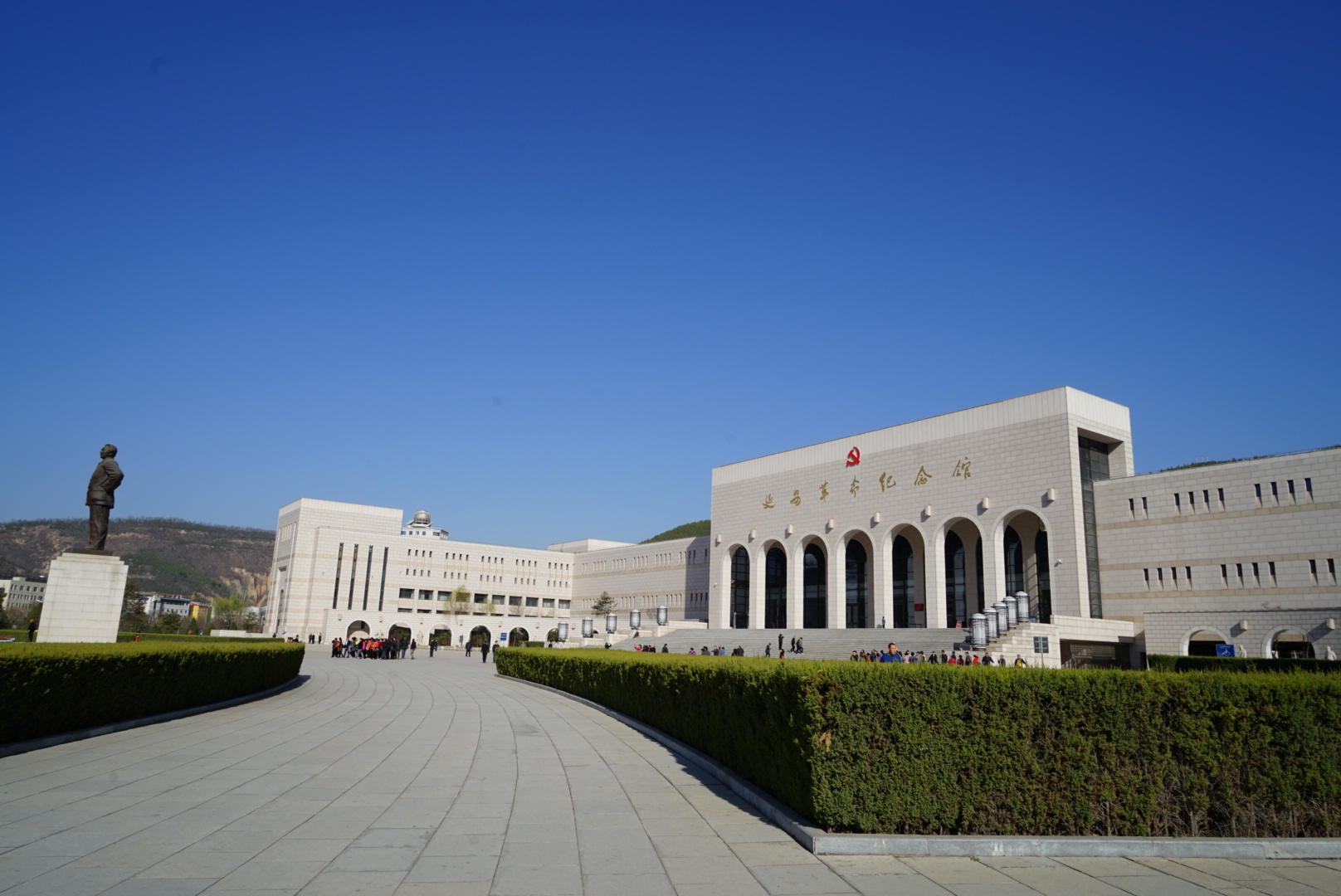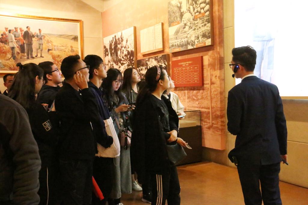 第一站是延安革命纪念馆,我们在一件件文物,一张张照片,一幕幕场景中前行,仿佛穿越时空,来到了那个战火纷飞,时局危难的时代。然而,在一片硝烟中,前方却屹立着一位位身形坚毅,顶天立地的伟人……我们看到在这片土地上,一位又一位的英雄献出了青春,热血甚至生命,我们看到革命的道路曲曲折折却绵延不断,我们看到中国的国运在乱世中由勇士们肩负前行……当我们结束参观走出纪念馆时,见眼前山河大好,高楼林立,车马如河,而身后的伟人铜像们,仿佛也与我们这些新时代的青年们一起,眼含热泪,向辉煌夺目的祖国致敬……
