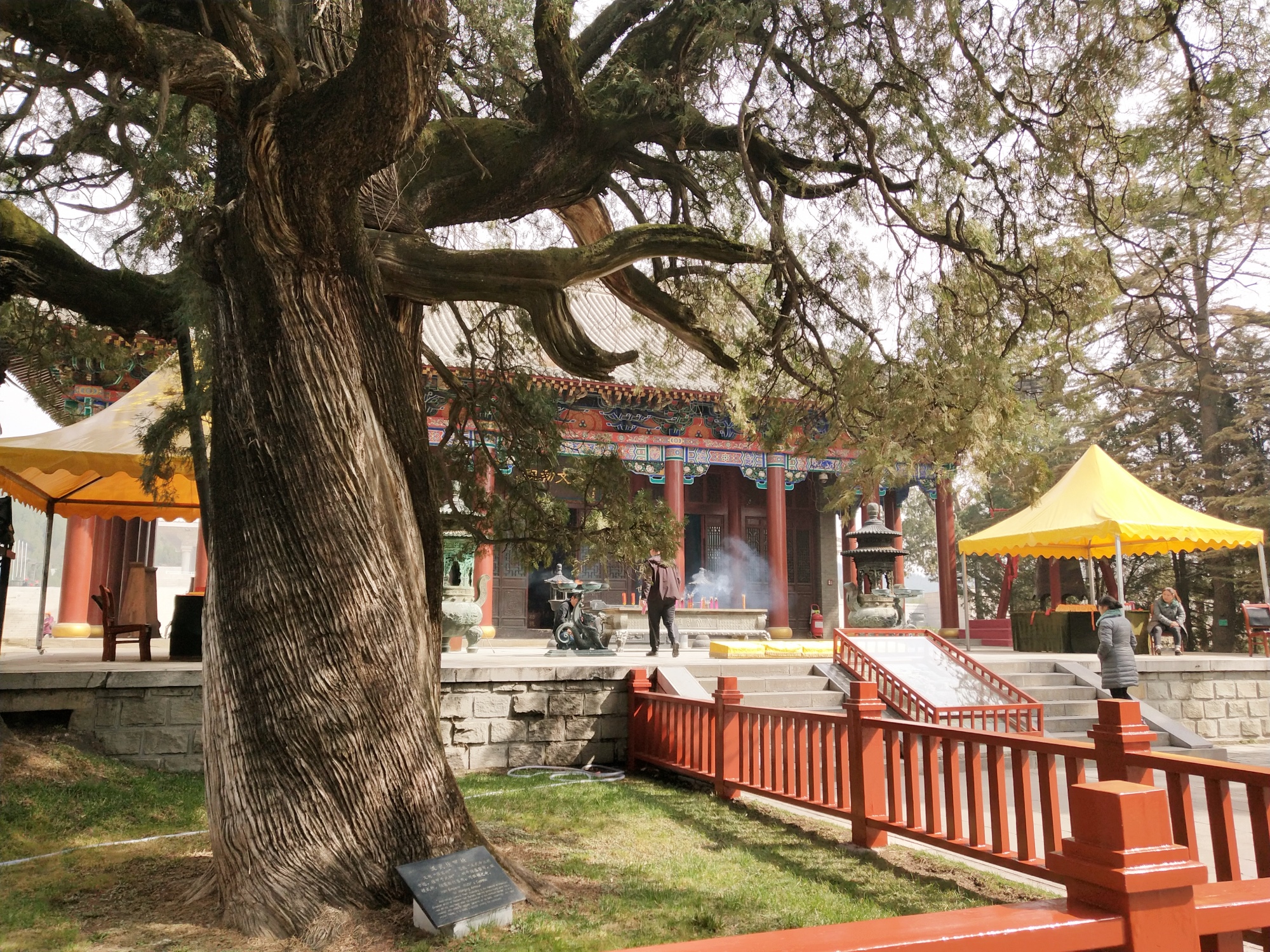 院中的“黄帝手植柏”其冠如盖,其势巍峨。余下的六万多株翠柏将桥山侧层层守护。