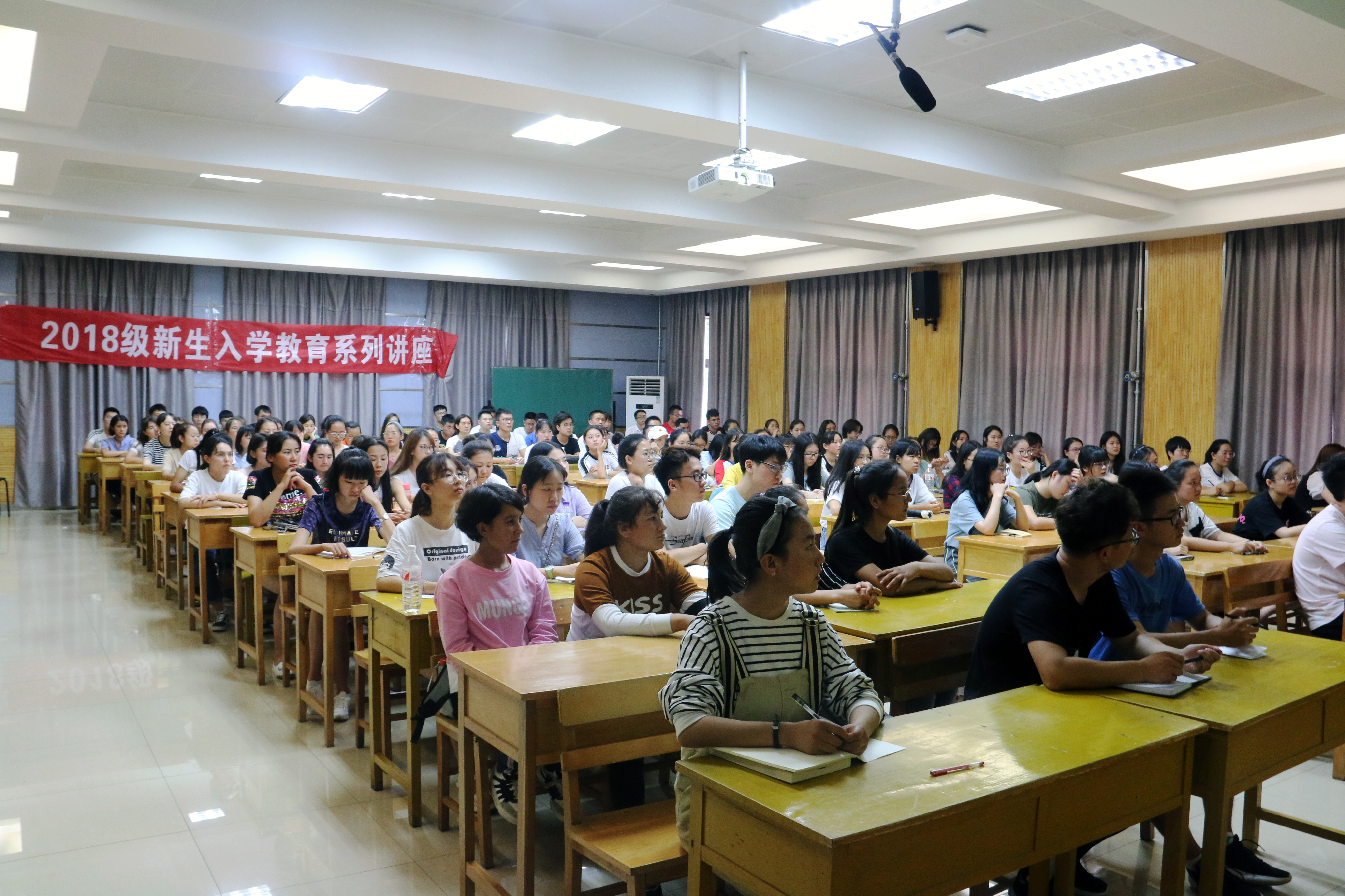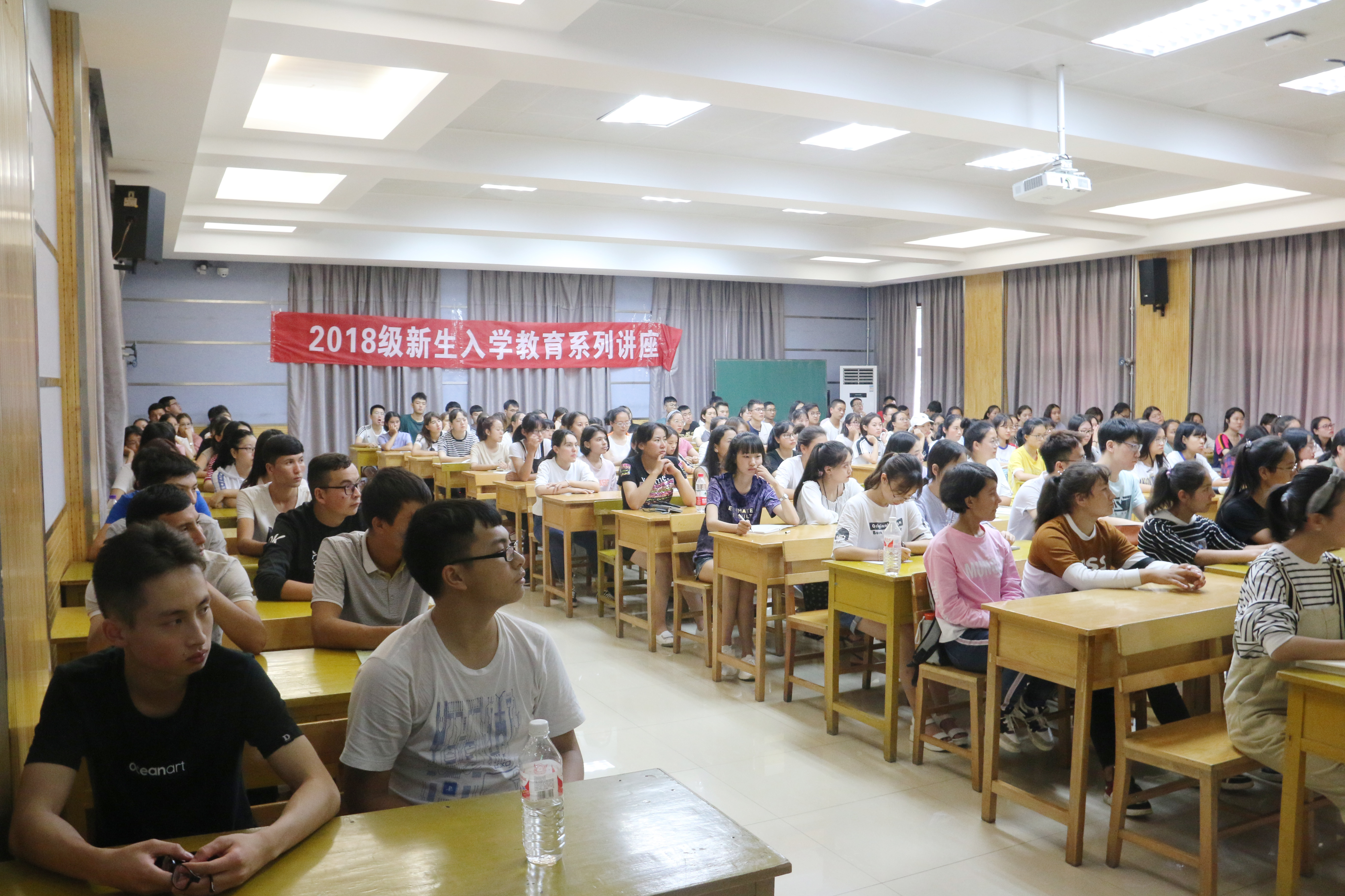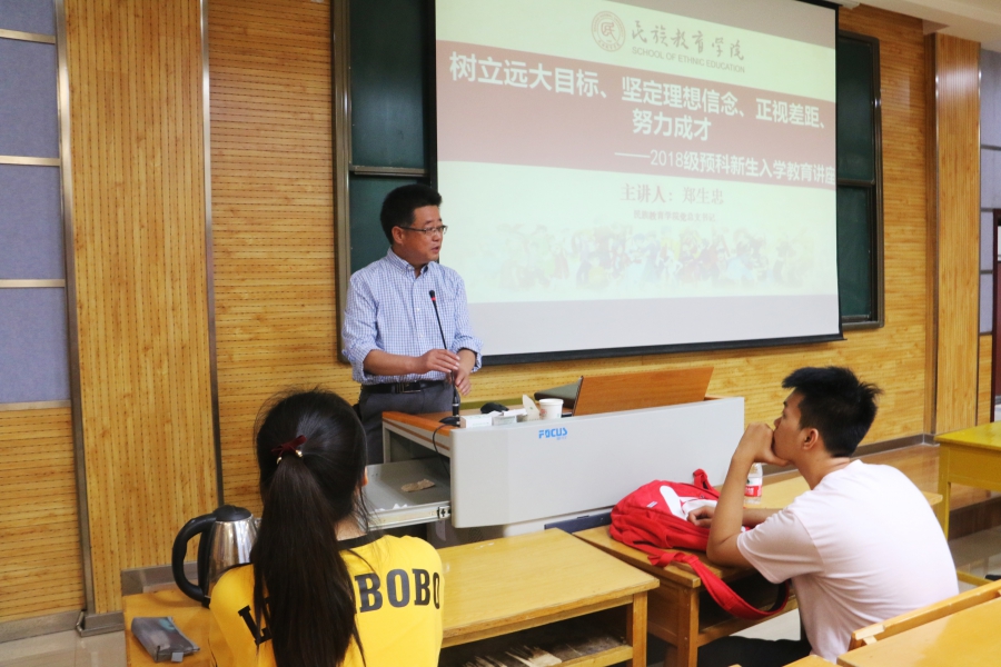 2018年9月12日下午4点30分,2018级新生入学教育系列讲座第二讲在公司雁塔校区5304教室开讲。本次讲座由公司党总支书记郑生忠主讲,讲座的题目为“树立远大目标、坚定理想信念、正视差距、努力成才”,旨在进一步加强对民族预科新生的远大目标的树立和理想信念的引导,帮助新生在新学期树立新目标、养成新风气、坚定新信念,营造积极向上的学习氛围。公司专职辅导员热依木、兼职辅导员许珊和141名全体预科新生参加了此次讲座。
