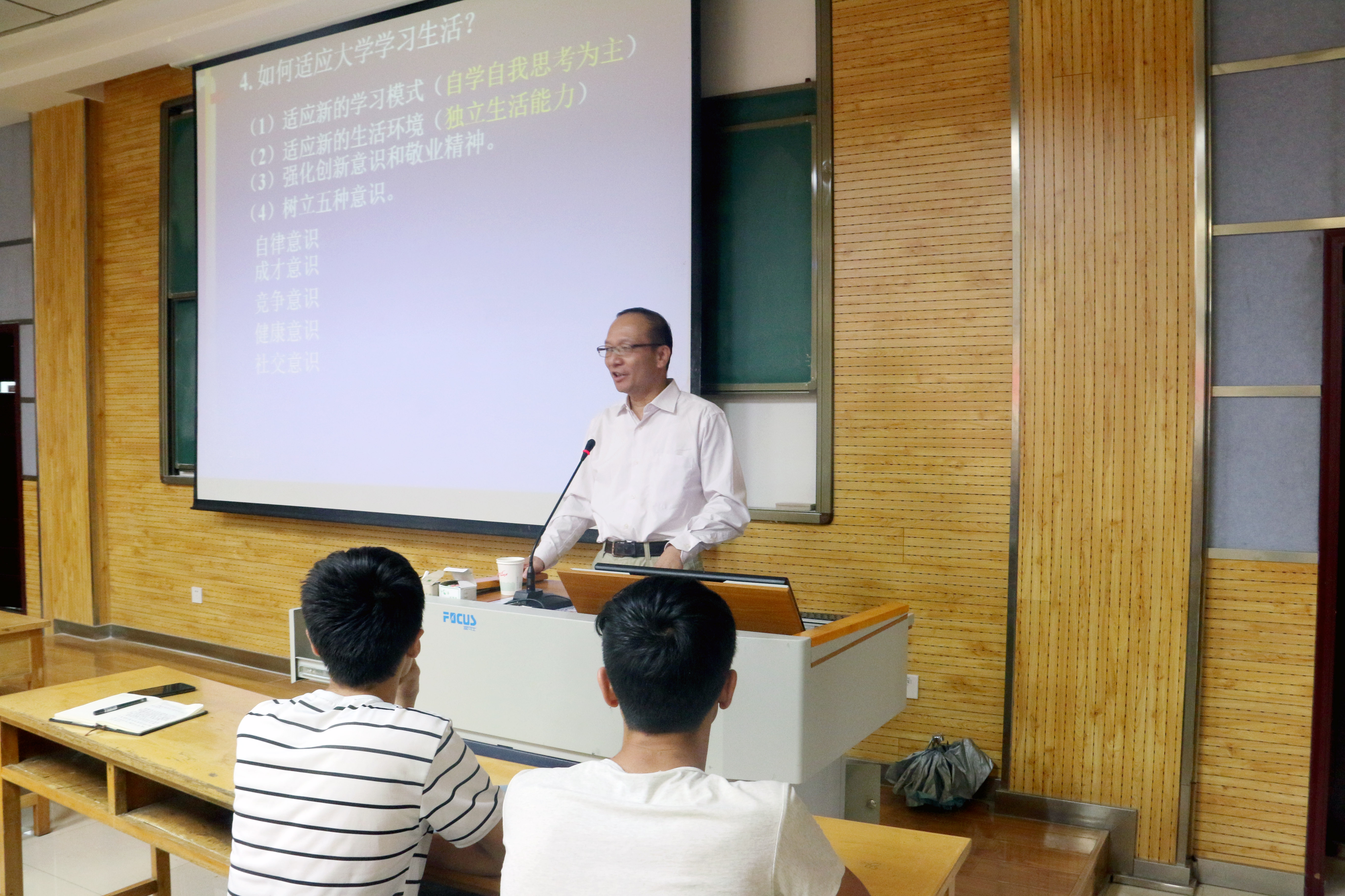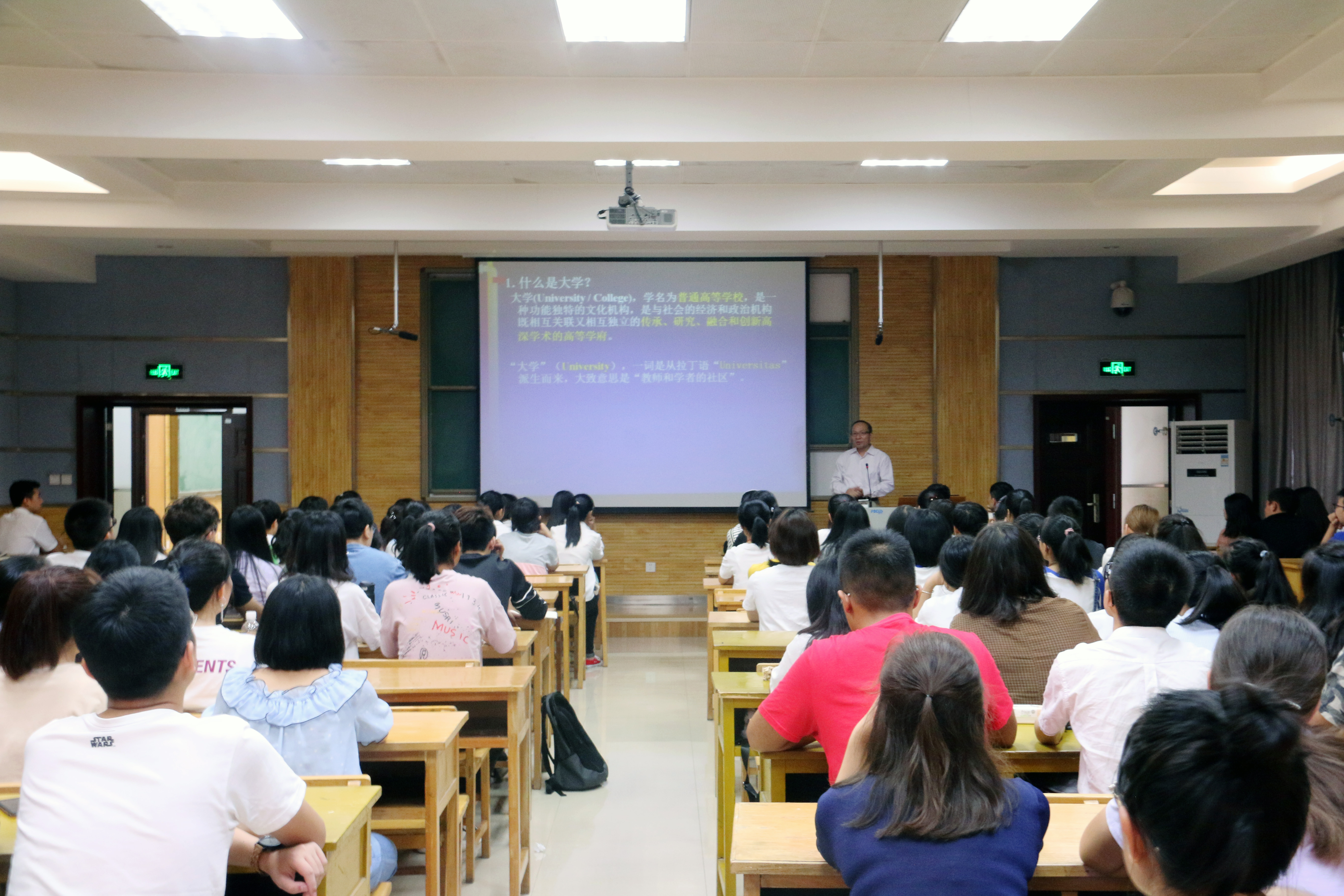 在介绍大学理念时,杨维平老师指出,大学是一种功能独特的文化机构,它既是教师和学者聚集地,也是培养人才与精英的象牙塔。大学的功能包括学习、继承、创造与实践,因而大学教育是人生的黄金阶段,是思想启蒙的重要环节,也是步入社会的过渡时期。为此,杨维平老师激励同学们要做“有理想、有文化、有道德、有纪律”的四有青年,做新时代下新要求下的优秀青年。