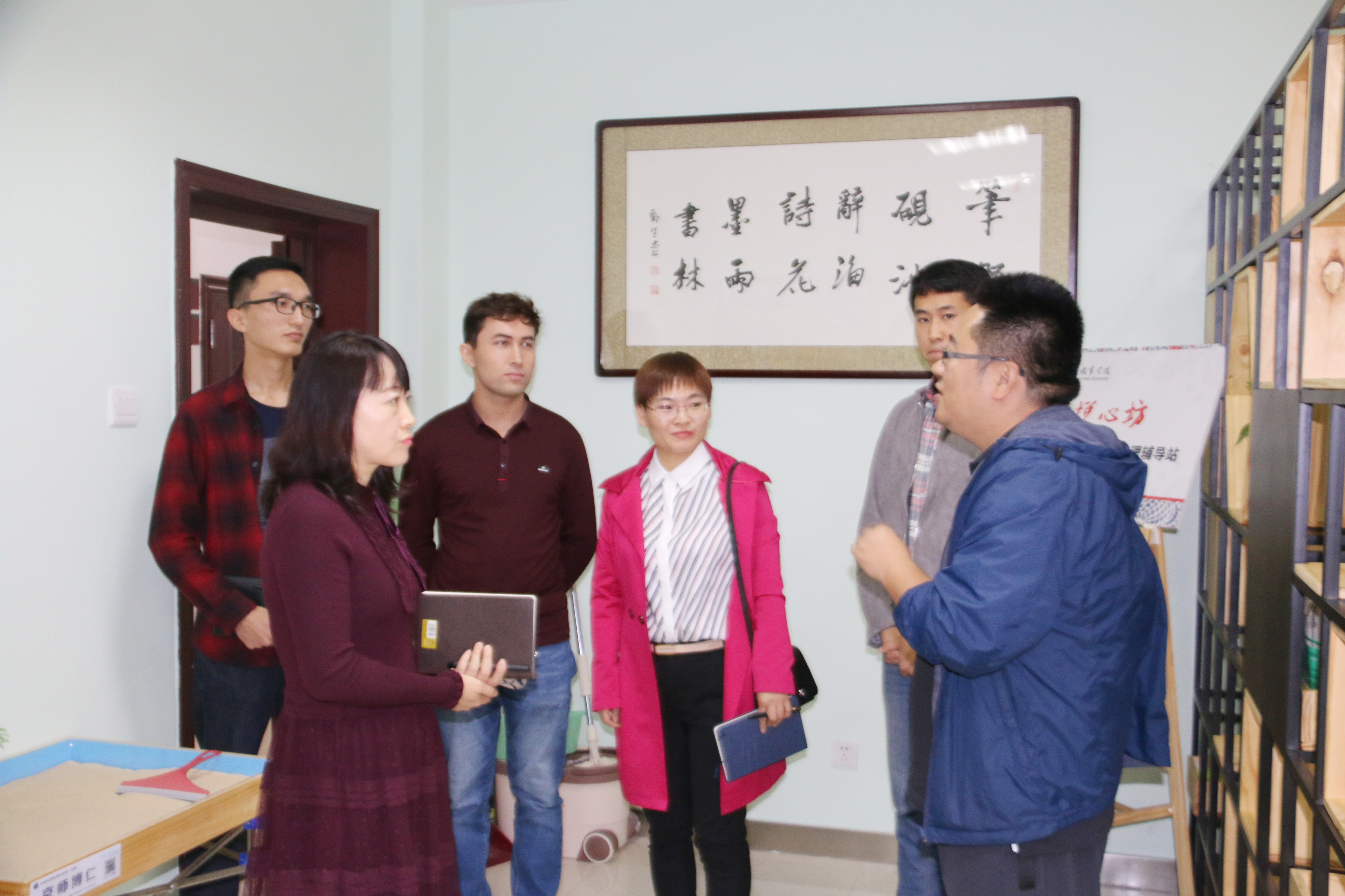 座谈会后,副书记窦文阳带领调研组分别参观了公司石榴籽工作坊(雁塔校区站)、公司“悦心坊”二级心理辅导站、公司文化墙和民族教育成果陈列室,介绍了公司的员工工作培养和管理等方面的相关内容和成果成效。