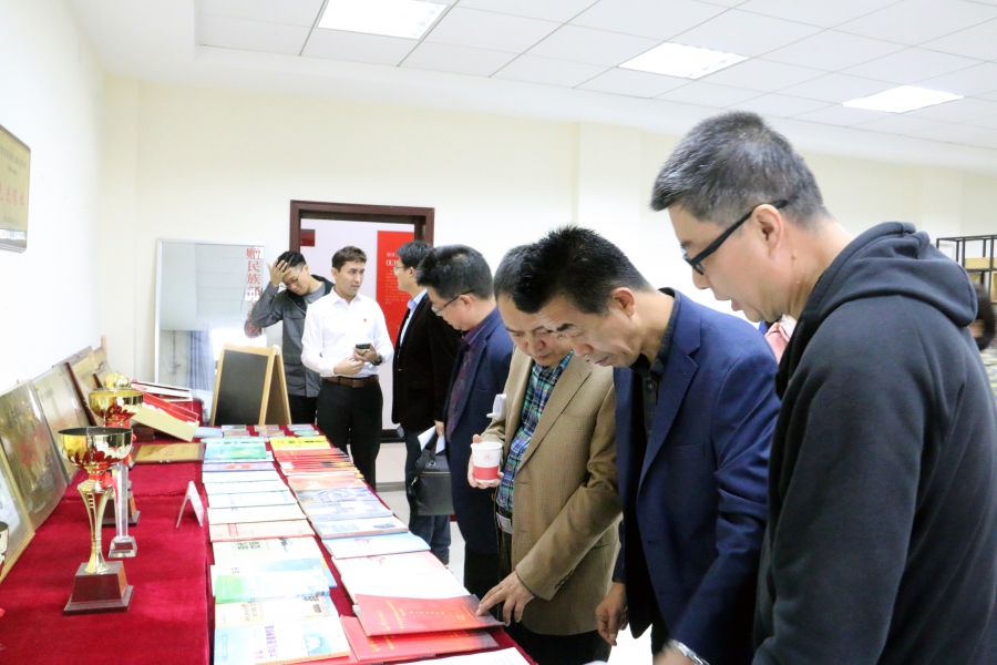 公司辅导员热依木引导大家参观了公司学工队伍办公室、公司“悦心坊”二级心理辅导站、石榴籽工作坊、民族教育成果陈列室、少数民族老员工马列理论学习中心、党团员工活动室等活动场地,并向大家介绍了以“同心共筑中国梦,中华民族一家亲”为主题的手绘文化墙,并对特色内容展示做了寓意介绍,同时也对文件柜中150余员工工作材料和员工管理制度档案盒做了简单介绍,展示了公司员工思想引领、组织建设、制度建设及特色服务活动等方面的育人内容。公司利用绿植、花卉、民族特产、为员工营造了一个清新、舒适、温暖的谈话氛围,公司工作均围绕着员工的思想政治教育工作、行政事务管理、心理健康教育和员工成长成才服务工作等方面积极探索创新,着力搭建平台,促进员工自主发展,早日成才。