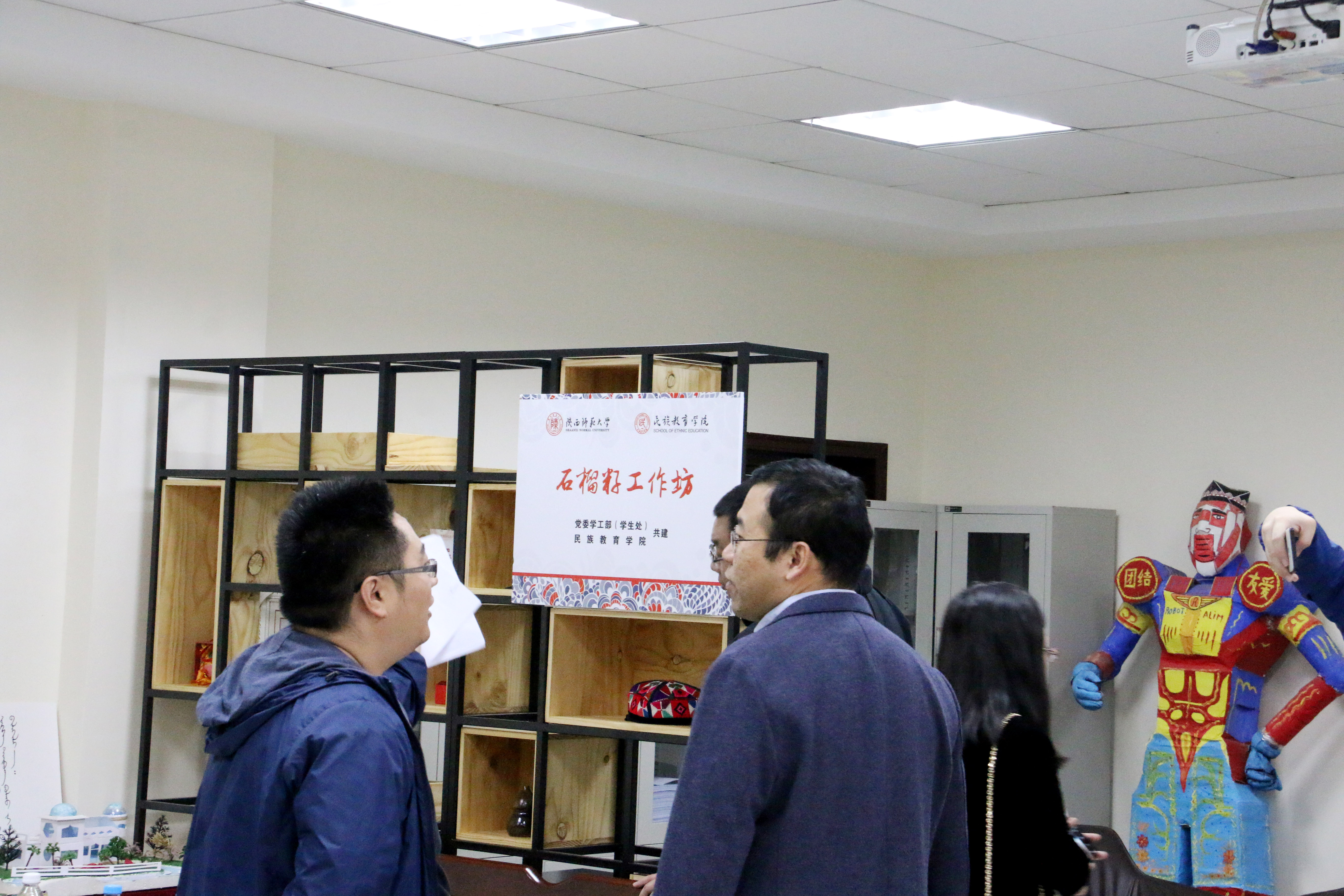 10月15日上午9时许,公司就业中心主任雒朝梁带队,党委学工部(员工处)副部(处)长曲洪刚和兄弟院系的党委副书记一行十余人组莅临民族教育学公司,现场进行考察评审。公司党总支书记郑生忠、经理冯建新、副书记窦文阳及专兼职辅导员迎接陪同检查并就公司学工文化建设总况做了介绍和讲解。