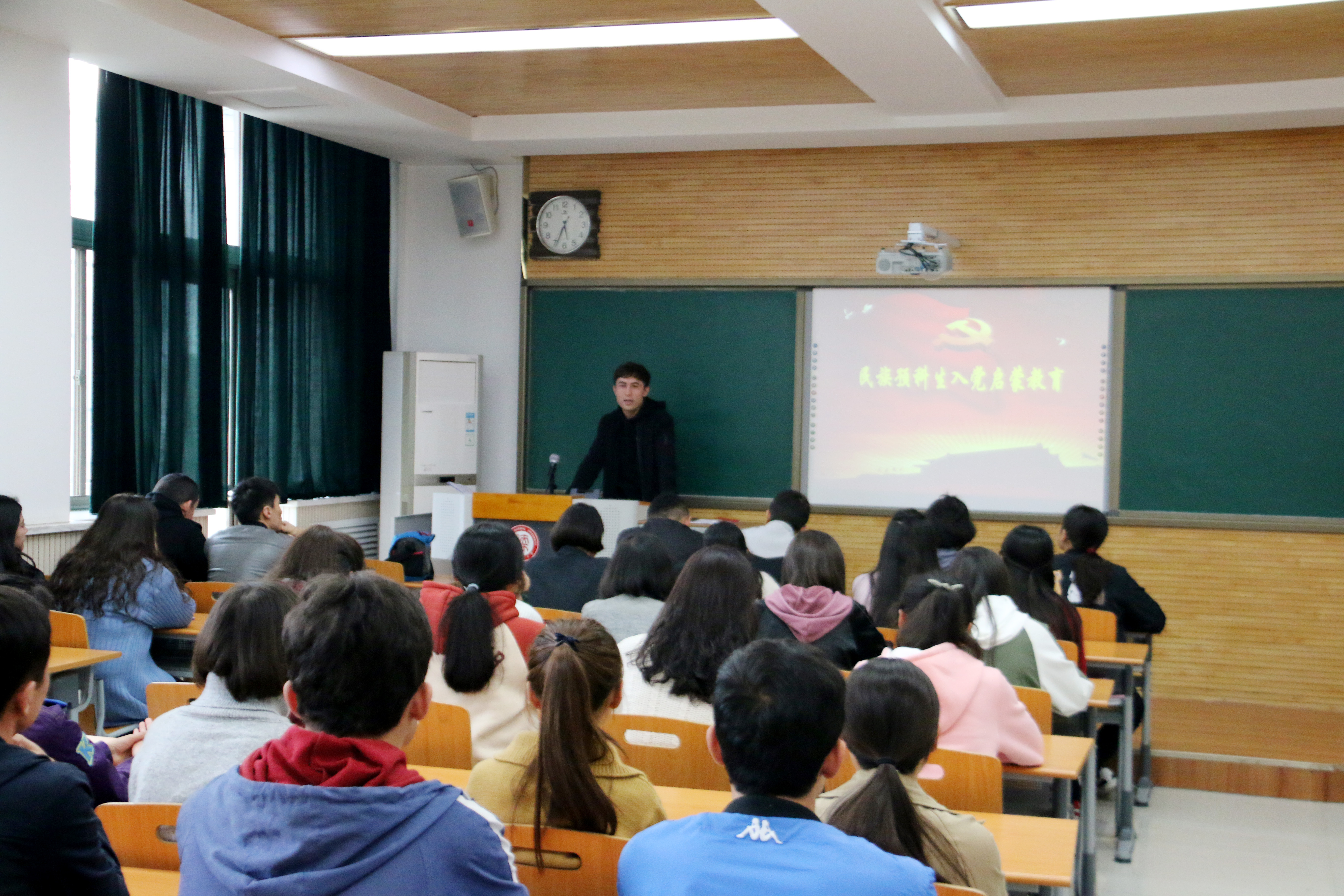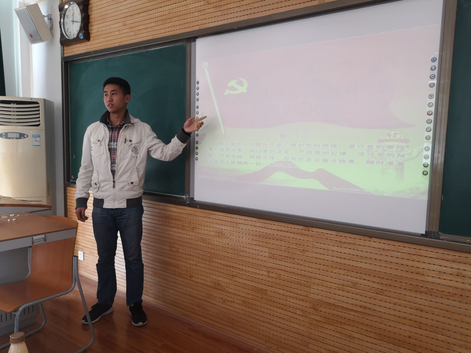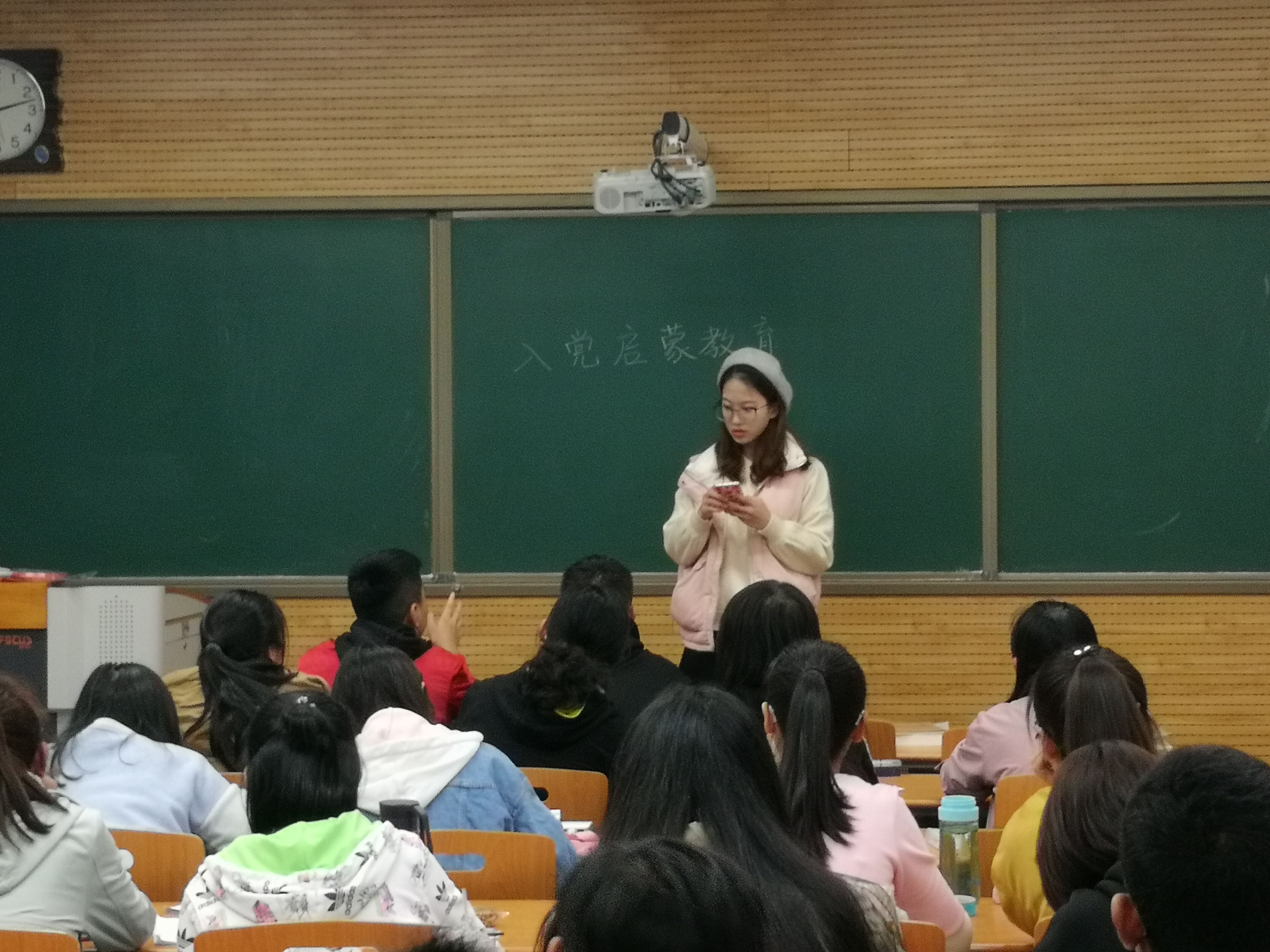 在班会上,各班团支书对近期组织班级所观看的红色影视做了简短的观后感汇报,汇报中,同学们都深深地感受到了我党历史上的艰辛并对如今我党新时代下的成绩感到骄傲和自豪。然后各班专兼职辅导员老师围绕党的十九大报告精神与新党章内容做了简单的介绍和教育。随后,针对为什么要加入中国共产党?怎么加入中国共产党?以及加入中国共产党的要求三个方面向员工做出了详细的阐述,具体向大家介绍了中国共产党的历史、性质、宗旨、最高理想等。使员工更加深入地了解了中国共产党。让同学们受到了思想上的洗礼,明白党组织是一个先进的集体,坚定了同学们的入党信念。老师们还对入党的流程给员工作出了简要阐述,对员工所提出的入党能不能挂科,如何撰写入党申请书等相关问题做出了简要回答。使员工对于入党的流程以及规范有了更加清晰的认识。最后,各班辅导员老师在员工中出现的主要问题上做了正确的引领和教育,向大家提出了一定要端正自己入党动机的要求,并结合历届入党积极分子为例,鼓励大家提高自己的思想意识,积极参与到入党的筹备工作当中去。