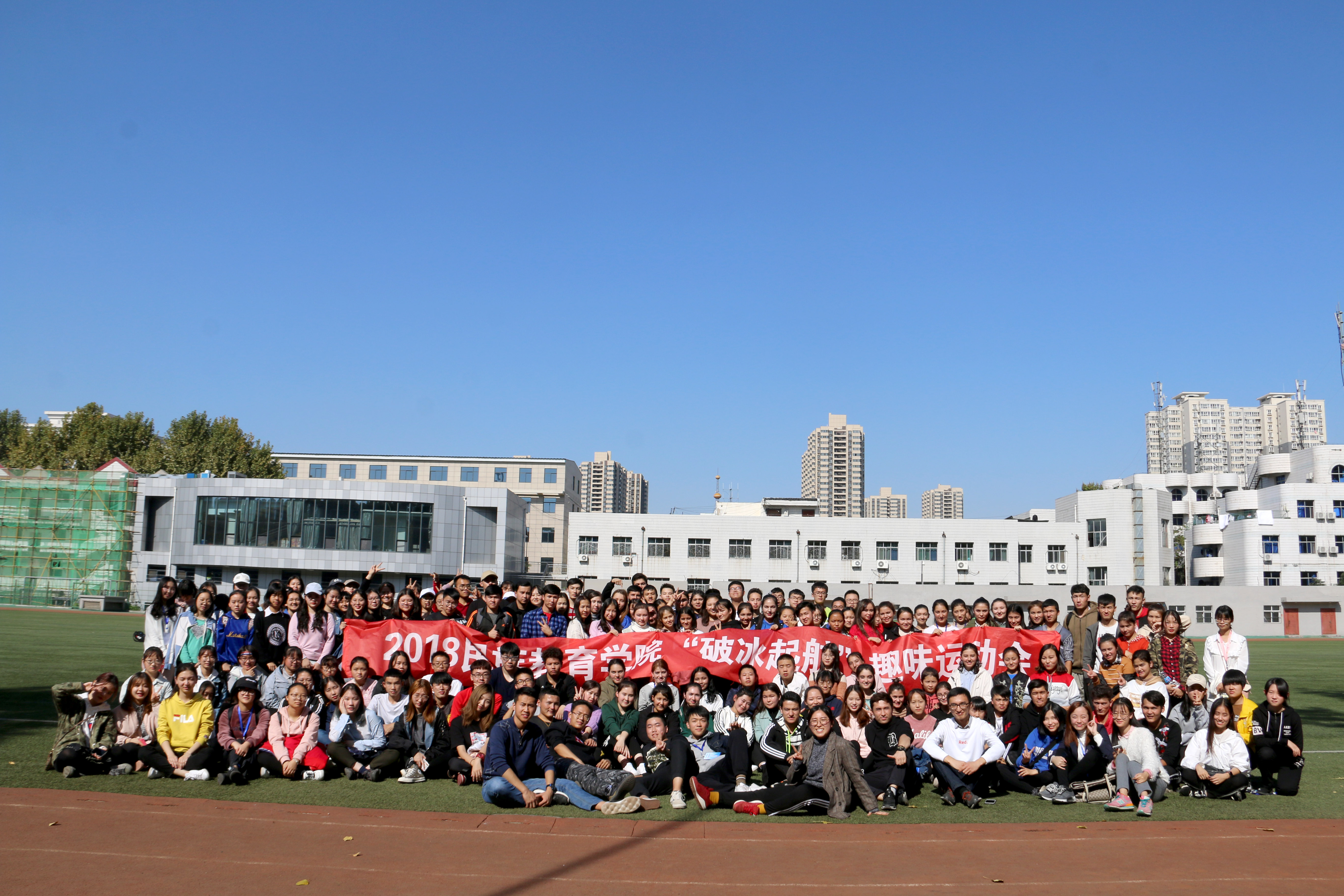 微风和煦,秋意正浓,同学们来到西安外国语大学操场,等待着运动会的正式开幕。开幕式由2018级预科2班邹粤龙同学主持,随着热依木老师的宣布运动开始,此次“破冰启航”趣味运动会正式开始。