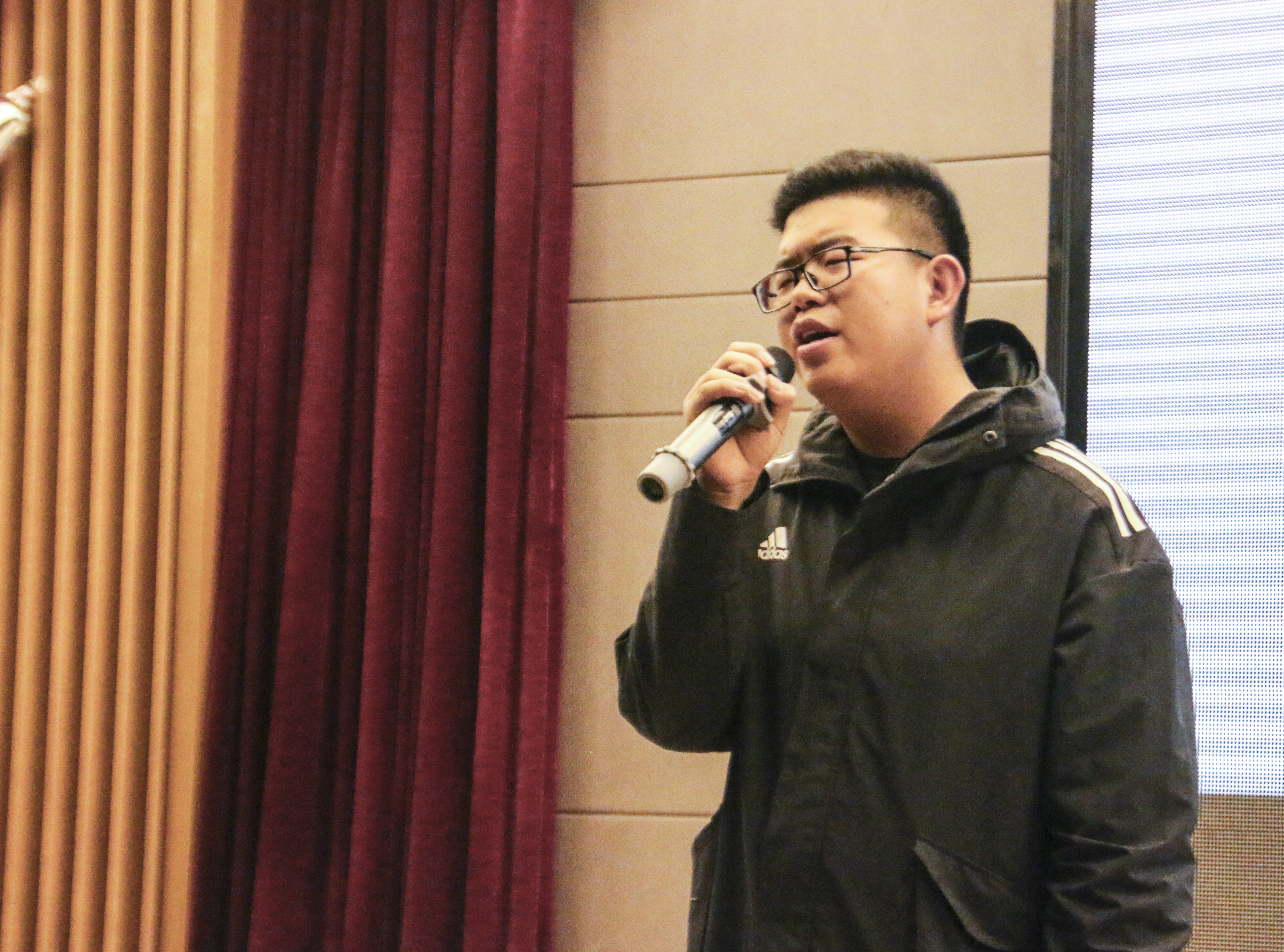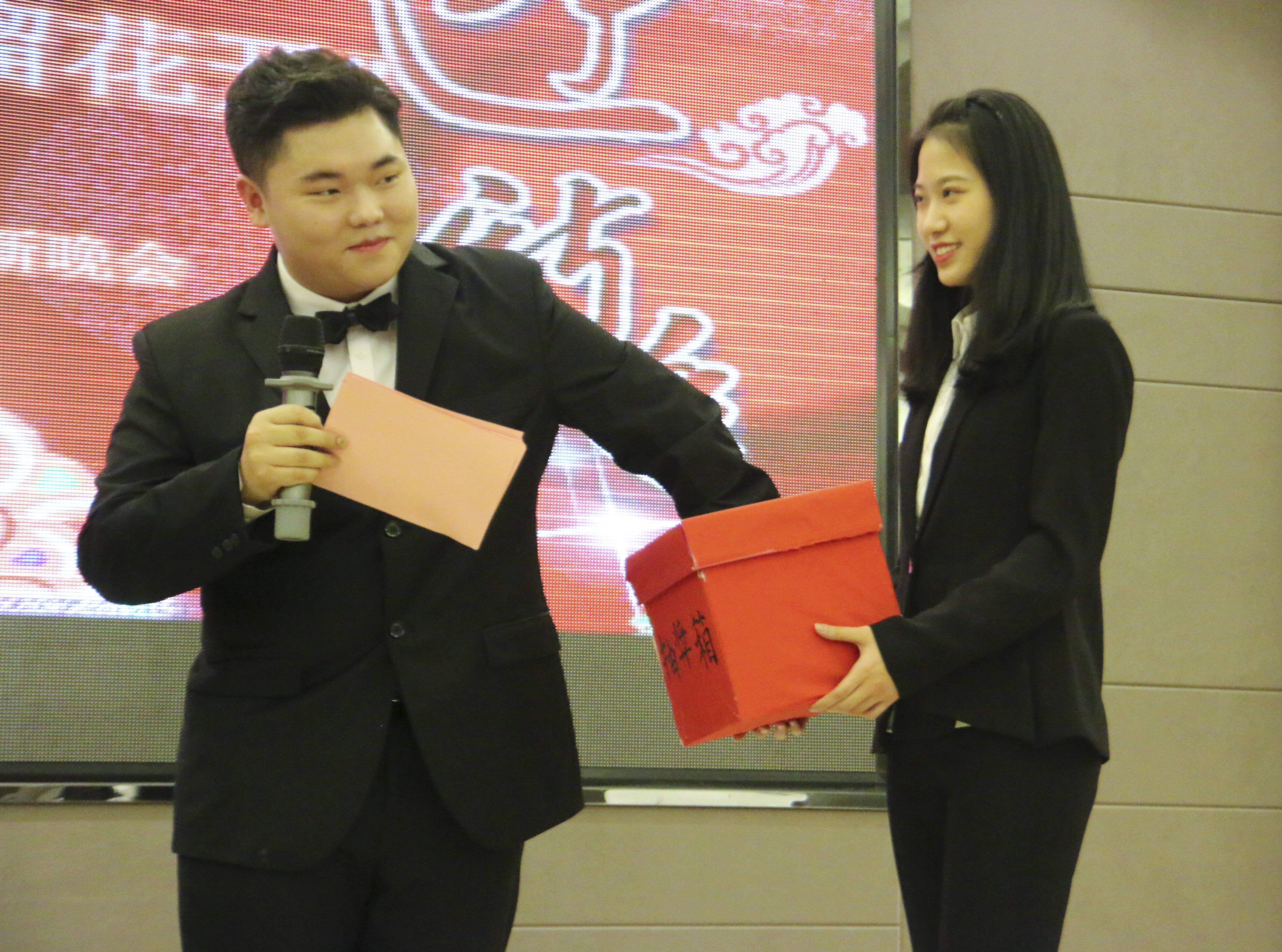 晚会即将开始之际,工作人员放映暖场视频,视频中不仅有来自公司老师、同学们对新年的祝福,还有开学以来全院同学们共同成长的点点滴滴,更有其他兄弟公司对我们的新年祝福。随着倒计时结束,炫酷的开场舞展现了民教学子的青春活力。随后主持人宣布晚会正式开始,经理冯建新为同学带来新年致辞,向大家表达了新年的祝福,他希望同学们新年新气象,充满斗志,勇于担当,脚踏实地,胸怀梦想,不断向前。