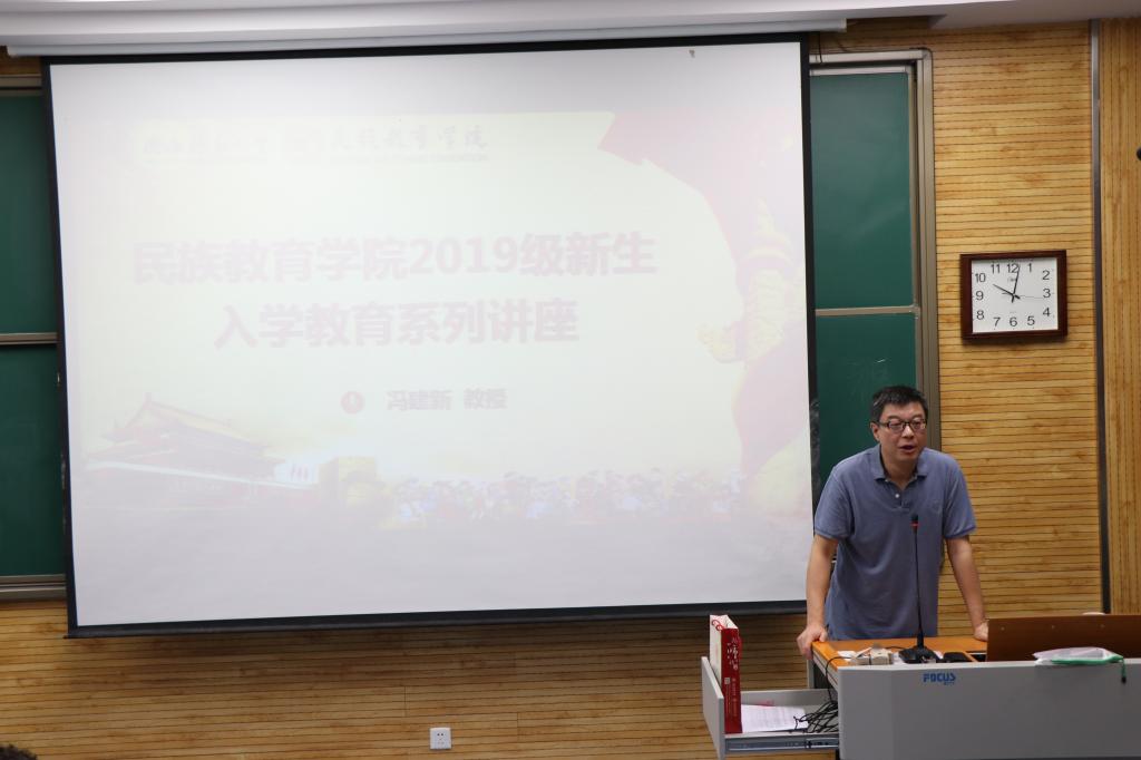 冯建新教授围绕热爱祖国、集体意识、“三个要求”、学习方法、专业分配、正确消费观、人际交往、遵守纪律等八个方面为同学提出了八点要求和建议,同时教育同学们大学的生活要抓紧学习,也要严格要求自己,待人有礼貌,做到“心平气和,善待他人”,以实现自身的全面发展。其中,经理总结发言时强调:“我送大家一个词语‘share’,也就是社会上现在倡导的‘共享’理念。我们要在生活上、学习上积极主动与他人分享,这是我们身体、心理健康以及学业有成的保证。”这与时俱进的表达是经理对民教院学子紧跟时代潮流的期许。在谈到有关读书、锻炼与遵守纪律等与同学们息息相关的内容时,经理以自身和往届同学为例,将生活中蕴含的道理通过朴实幽默的语言向大家娓娓道来,同学们感到十分亲切。同时,经理向大家讲述了自己阅读《西方哲学史》的经历,向同学们分享了自己读书的方法,并告诫同学们一定要多读书,读好书,“书里有你不知道的一切”。