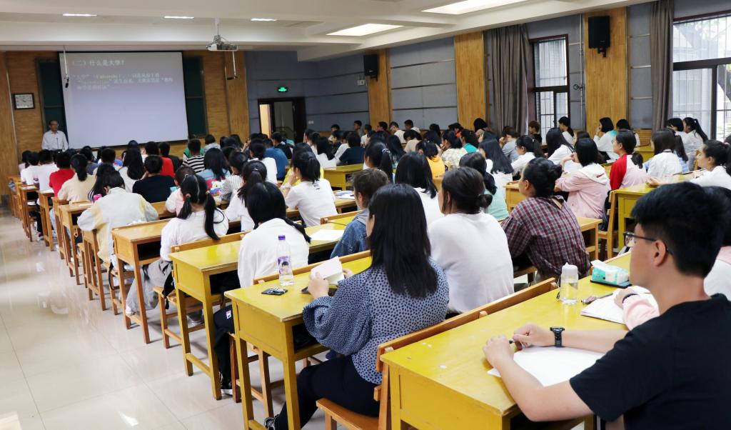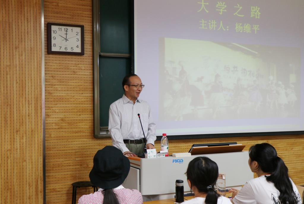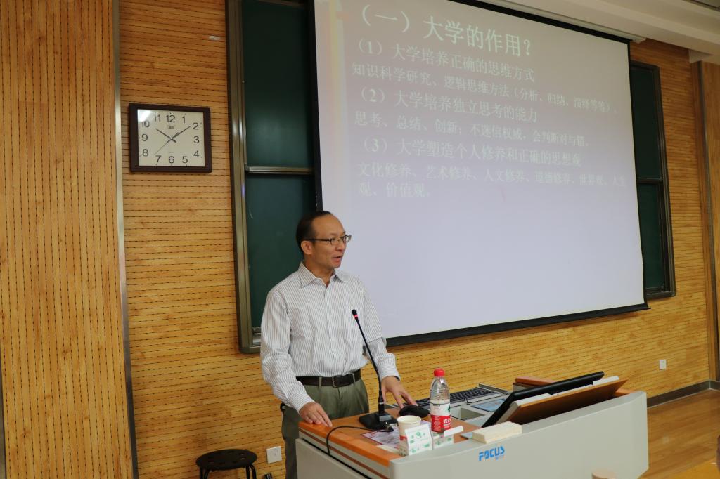 在介绍大学理念时,杨老师指出,大学是一种功能独特的文化机构,它既是教师和学者聚集地,也是培养人才与精英的象牙塔。大学的功能包括学习、继承、创造与实践,因而大学教育是人生的黄金阶段,是思想启蒙的重要环节,也是步入社会的过渡时期。为此,杨老师激励同学们要做“有理想、有文化、有道德、有纪律”的四有青年,做新时代下新要求下的优秀青年。在大学,更要转换依赖性为独立性,单打独斗为团队协作,学会合作精神,让自己的老员工活高效有序。