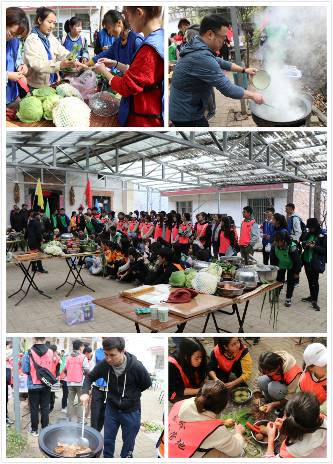 午饭时间,同学们开始了“人民公社大锅饭”项目。同学们默契配合,分工合作,在辅导员老师们的协助下共同烹制出了色香味俱全且极富意义的午餐。