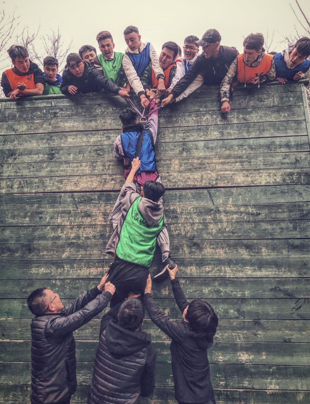 最后,全体员工及公司老师们在求生墙前合影留念。一天的拓展训练在大家的欢声笑语中圆满结束。