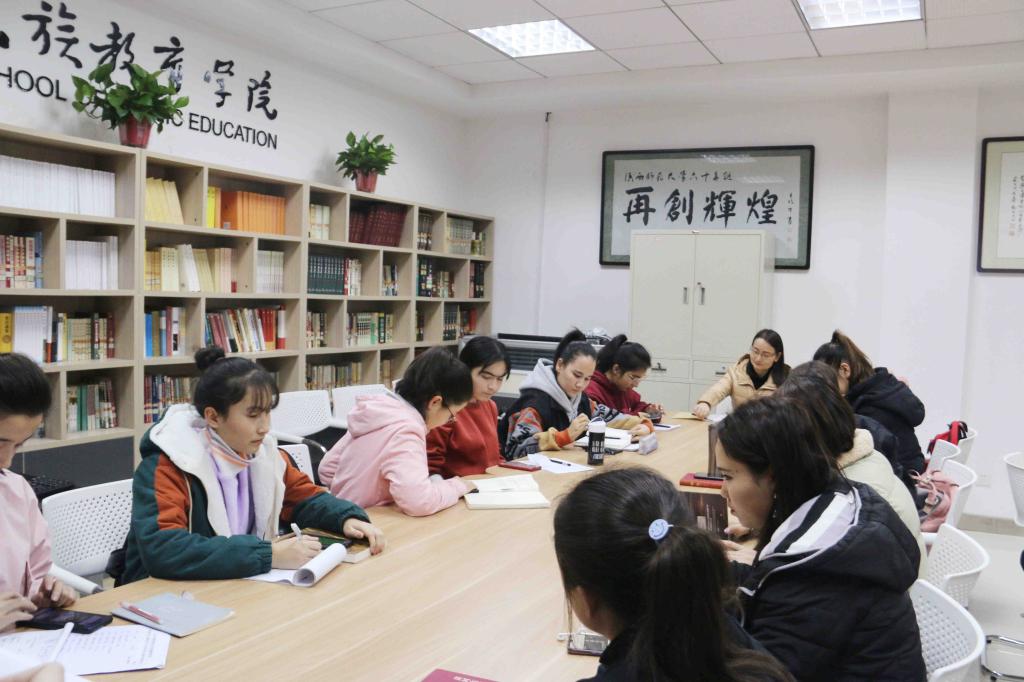 本学期第一期经典导读会在教学九楼9705教室举行,谢欣然老师给同学们进行了阅读指导,参加活动的有公司部分同学以及少数民族员工马列理论学习中心全体成员,马列理论学习中心部长陈鹏帆主持本次活动。