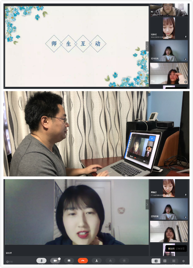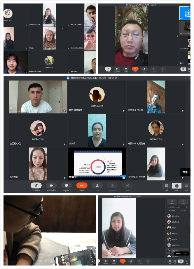 预科三班则以“‘秦’劳勇敢,守住来之不易的‘零’”作为云班会主题。班会上,首先通过视频的形式向同学们展示了抗击疫情过程中涌现出的感人事迹和敢于担当、取得突出成绩的正面典型,同时通过视频向同学们介绍了近期的疫情信息,让同学们对现阶段疫情的发展有了更深入的了解。随后,同学们与唐涛老师、卢静老师和谢欣然老师进行了热烈的师生互动,大家一起畅聊疫情期间生活状态,交流内心的感受和感思,班会最后,辅导员热依木老师做了班会总结。