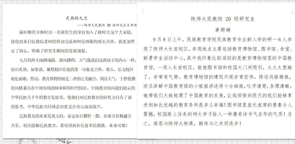 9月8日上午,公司组织2020级研究生对新校区校园和教育博物馆进行了参观学习,感受师大深厚的历史底蕴和文化传承,参观完后员工撰写心得体会,表达真情实感。