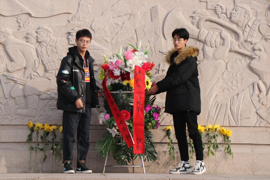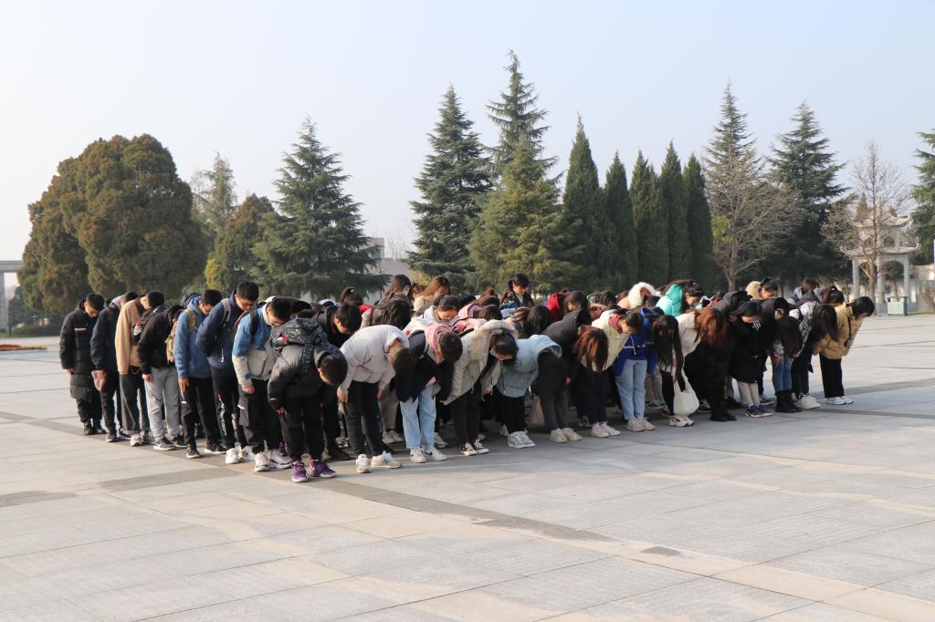 上午九点三十分,师生到达扶眉战役纪念馆。纪念碑前,缅怀烈士活动在庄严的国歌声中正式开始,师生在纪念碑前默哀三分钟并行三鞠躬礼,伴随着庄严的音乐,员工代表上前敬献花篮,致先烈最崇高的敬意。在扶眉纪念馆,讲解员通过一张张历史照片、一件件革命文物,生动地再现了革命先烈浴血奋战、视死如归的场景,使师生全方位了解中国解放战争中西北战场上最大的一次战役艰苦的历程以及浴血战场的英勇事迹,在场的师生都切身感受到革命先烈们在艰苦卓绝的革命斗争中不畏艰险、勇于牺牲的革命精神。同学们在感叹战役的规模之大、意义之深的同时,也被烈士大无畏的革命精神和艰苦奋斗的钢铁意志所感动并纷纷表示要向烈士学习,并将这种精神与意志发扬光大。
