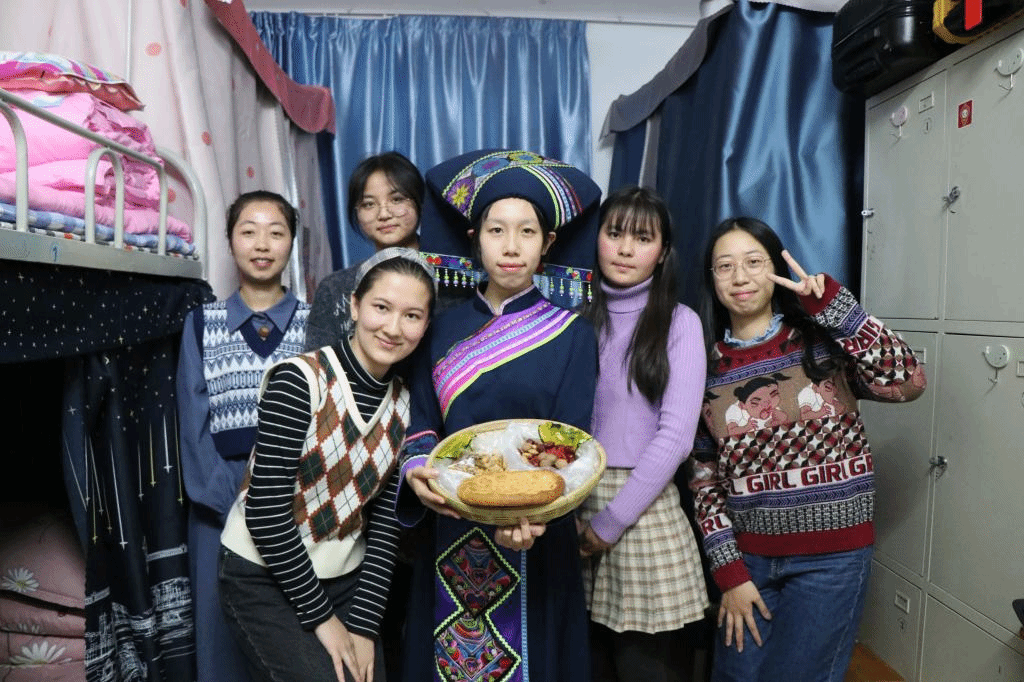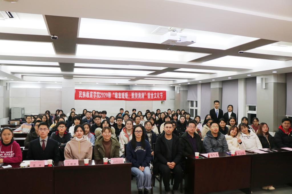 随后,员工骨干代表、生活部部长潘保茹做文化节活动总结发言,向本次宿舍文化节给予大力支持和帮助的老师们和积极参与的全体同学表示感谢,对取得优异成绩的集体表示祝贺。潘保茹同学说道:“本次宿舍文化节以民族团结为主线,对促进同学们之间的交往交流交融,互帮互助,构建和谐校园环境具有十分重要的意义,活动圆满结束后,同学们不约而同的在民教院2020级的QQ群里发‘民教院一家亲’的信息,同学们团结的精神态度令人十分动容。我希望通过这些活动同学们能深感‘民族团结一家亲’的重要内涵,更加珍惜民族团结,乐享民族团结带给我们的欢乐与喜悦。”