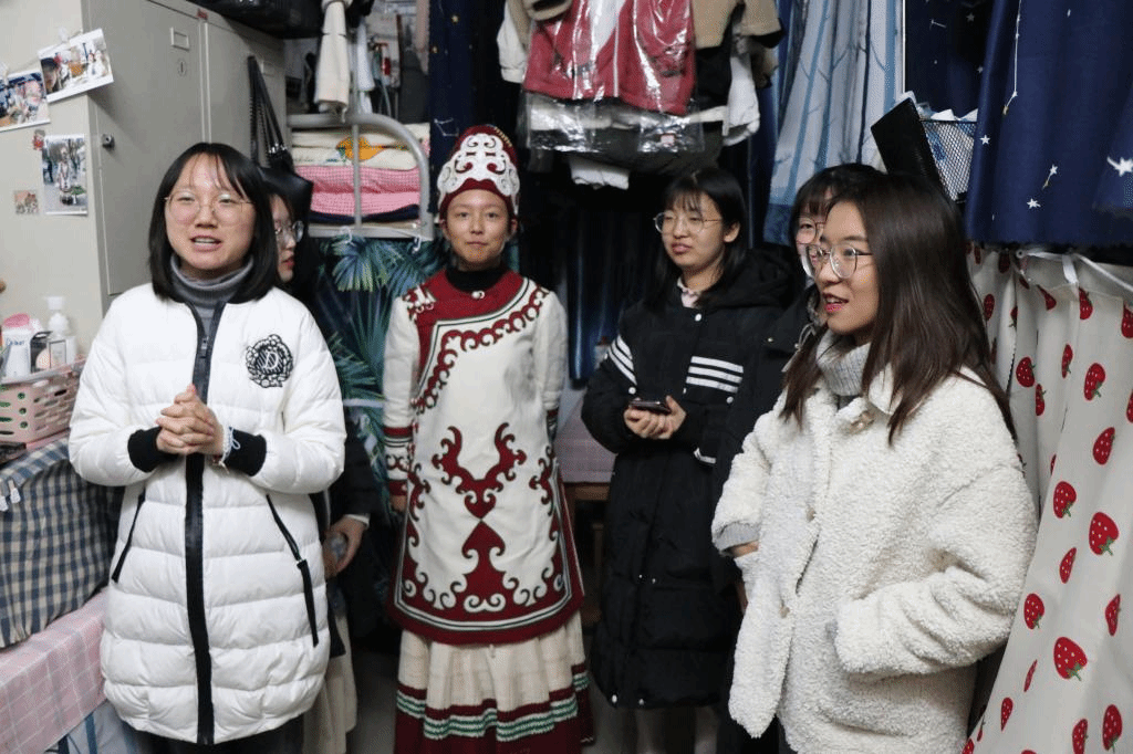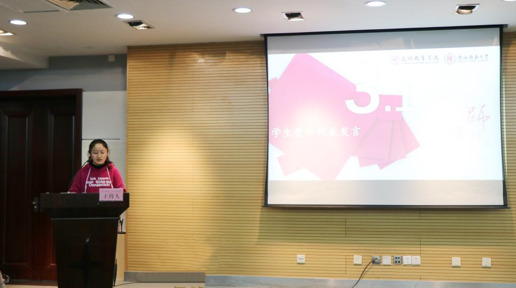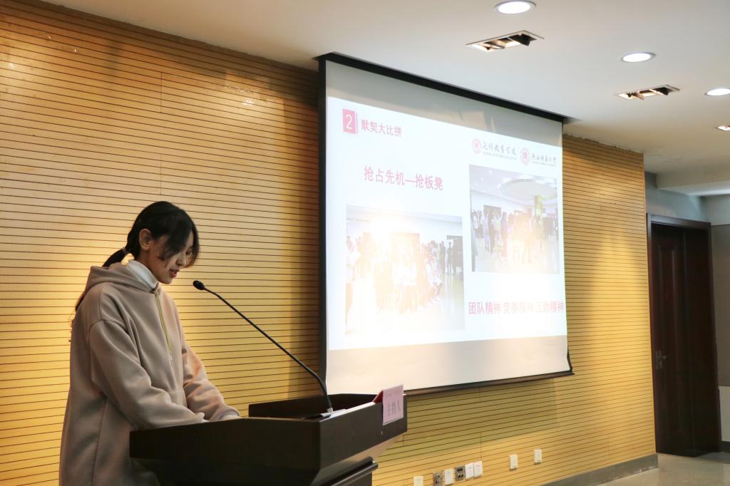 首先,员工代表马佳睿同学向参会人员分享她在本次宿舍文化节的所见所闻所感。她将“默契大考验”活动中体现出的精神总结为:团队精神,竞赛精神,互助精神;将“室全室美”活动总结为三个方面:温馨有爱、文化交融、包容制约、民族团结;最后她说到:“各民族的同学穿上自己民族服装,表演各自民族才艺,我感受到了同学们都将各自民族文化展现给大家,让同学们学习了解各民族的文化和特色,在宿舍合影上看到大家的笑脸,体现出了大家对少数民族文化的尊重,热爱中华民族的情感以及同学之间的民族凝聚力。”