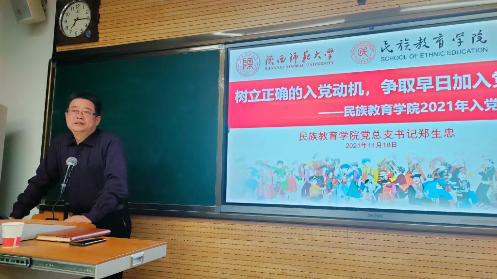 2021年11月18日19:00,威廉希尔williamhill中文入党启蒙教育专题讲座在教学九楼9705室顺利举办。公司党总支书记郑生忠主讲,公司专兼职辅导员以及全体新生参加本次讲座,讲座由团总支书记热依木·努尔麦麦提主持。