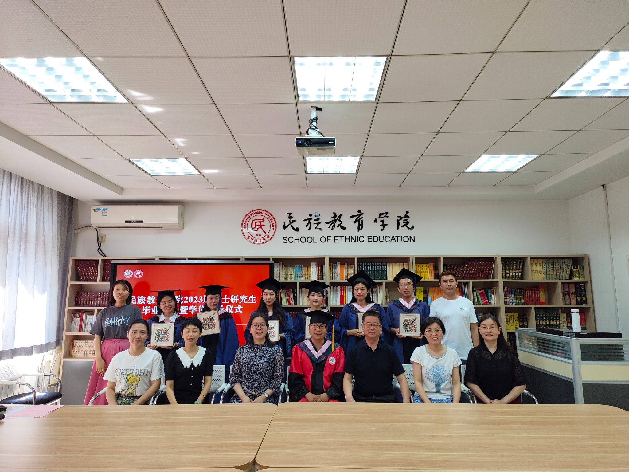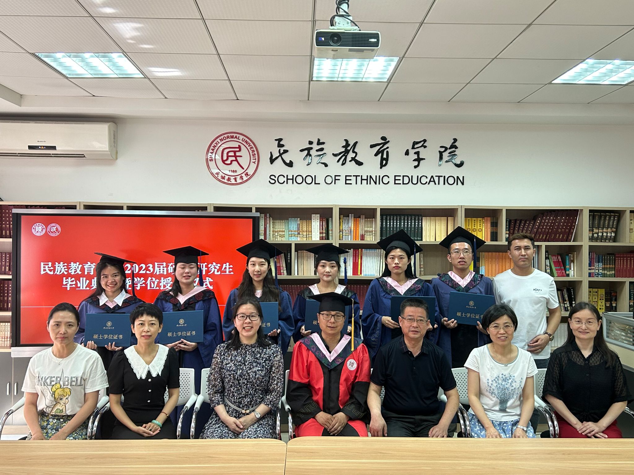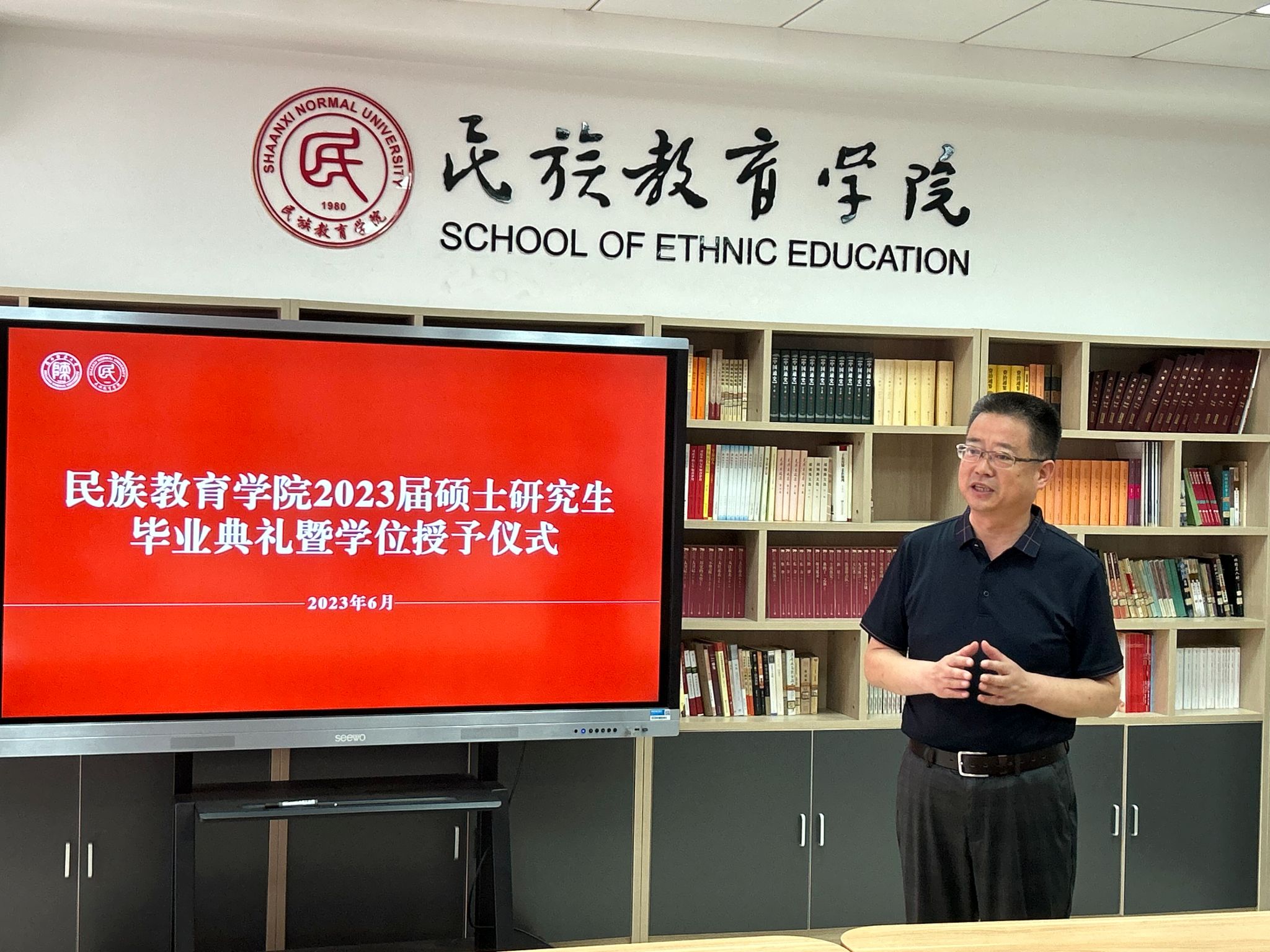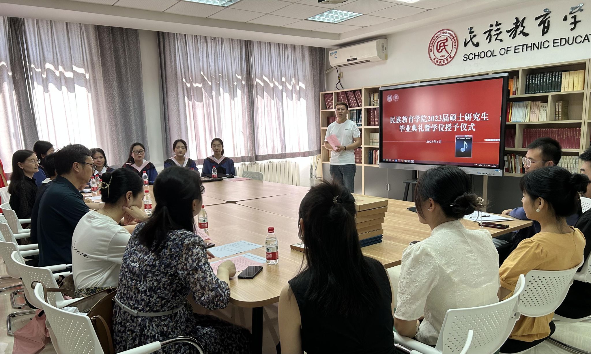 2023年6月29日上午10:00,威廉希尔williamhill民族教育公司2023届硕士研究生毕业典礼暨学位授予仪式在雁塔校区六附楼305会议室举行。公司党总支书记郑生忠、学术委员会主任、经理、党总支副书记龙宝新、学术委员会副主任戴妍及毕业生导师代表卢静、成珊娜、萨仁娜出席了本次典礼。毕业典礼由公司党总支组织员、团总支书记、研究生专职辅导员热依木·努尔麦麦提主持,公司2023届毕业研究生和2021级研究生到场参加。