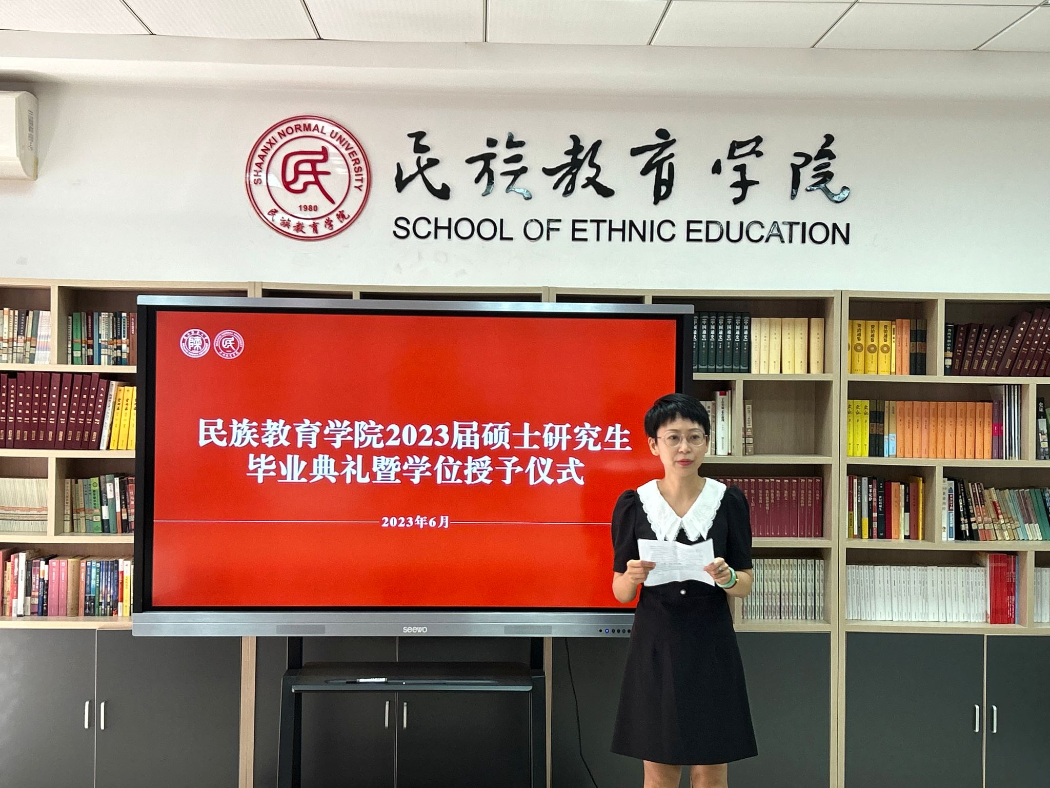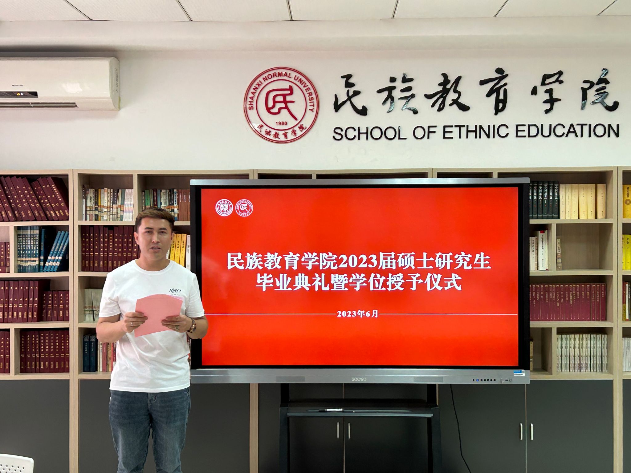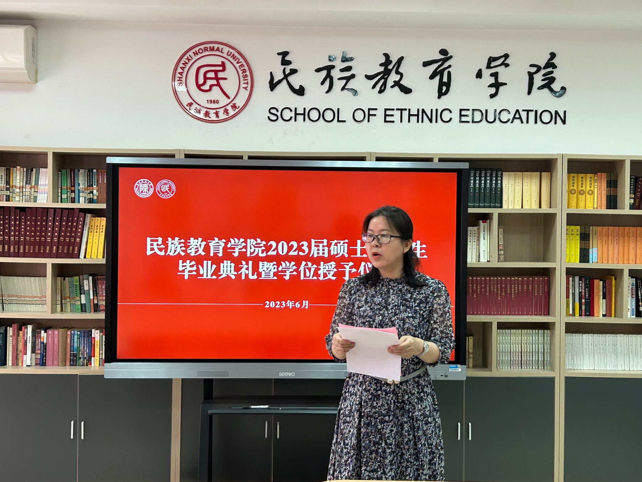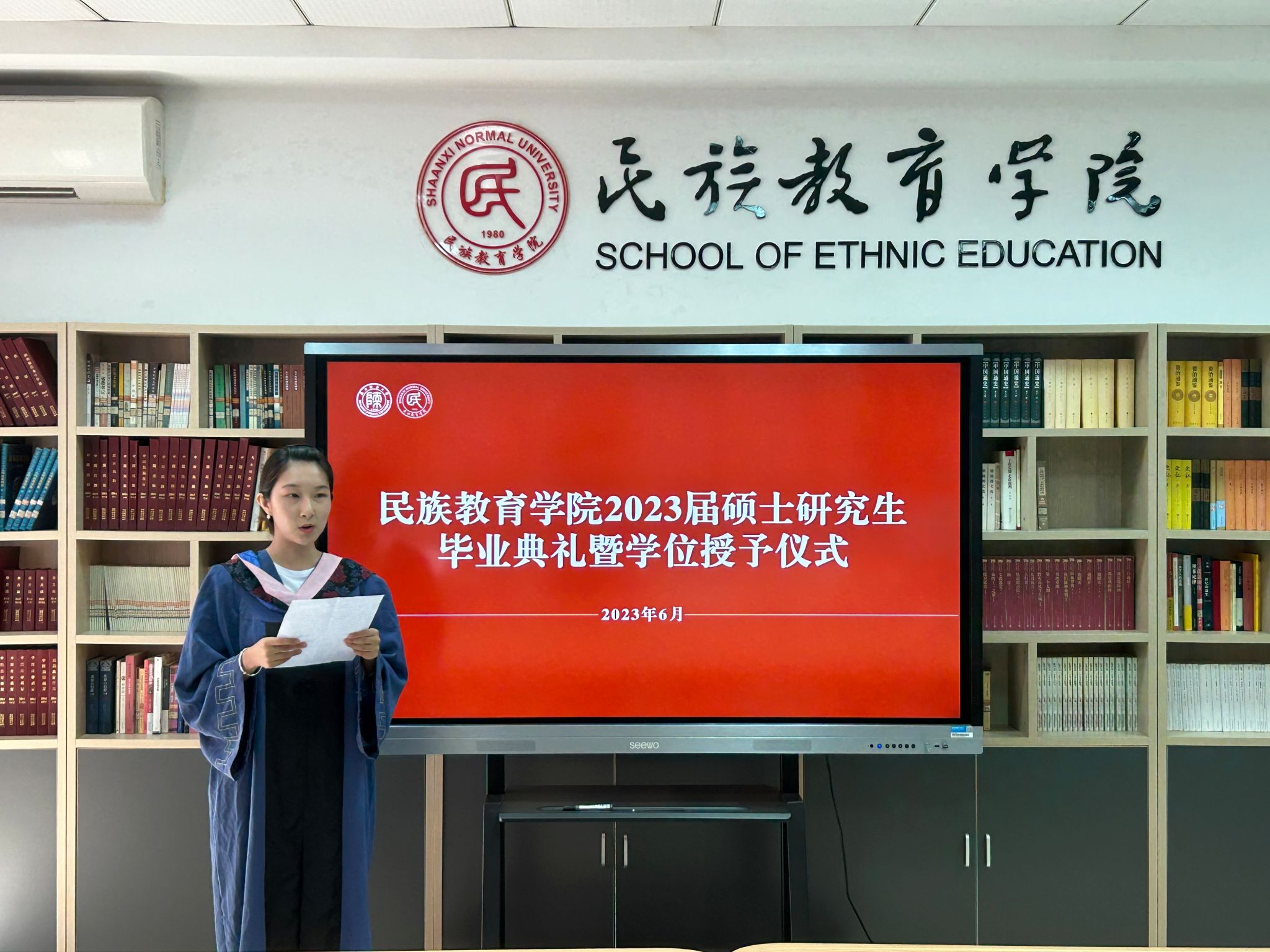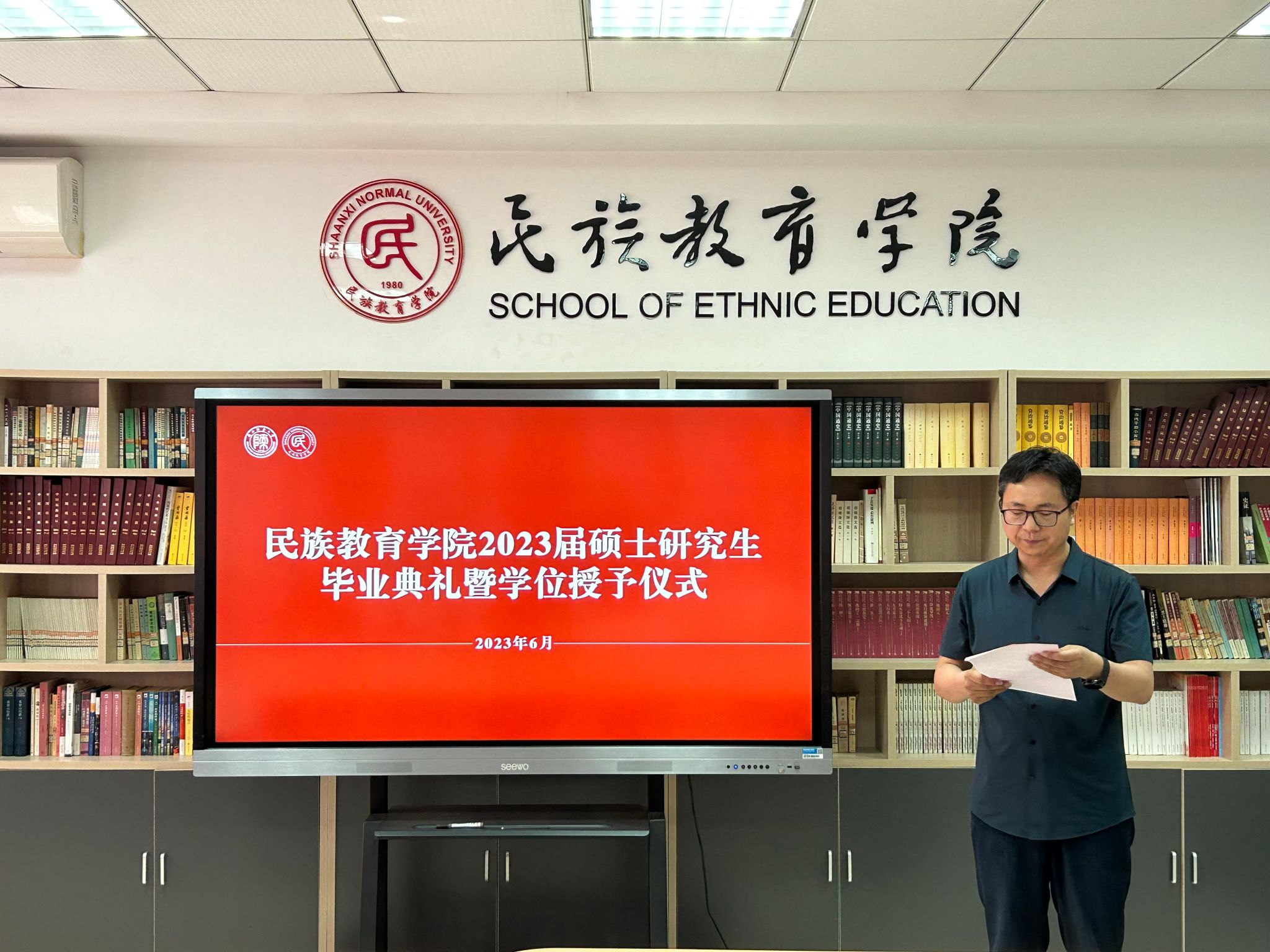 2023年6月29日上午10:00,威廉希尔williamhill民族教育公司2023届硕士研究生毕业典礼暨学位授予仪式在雁塔校区六附楼305会议室举行。公司党总支书记郑生忠、学术委员会主任、经理、党总支副书记龙宝新、学术委员会副主任戴妍及毕业生导师代表卢静、成珊娜、萨仁娜出席了本次典礼。毕业典礼由公司党总支组织员、团总支书记、研究生专职辅导员热依木·努尔麦麦提主持,公司2023届毕业研究生和2021级研究生到场参加。