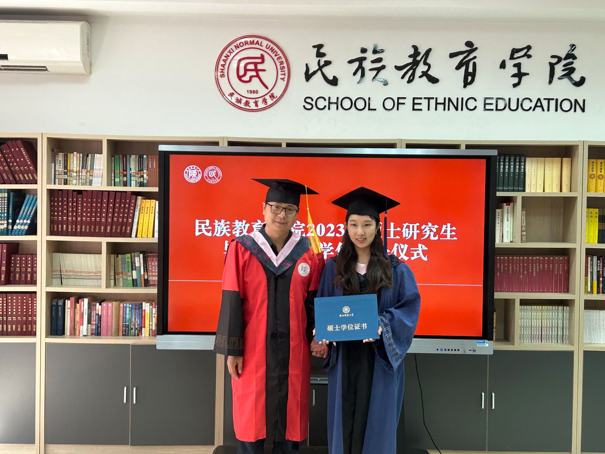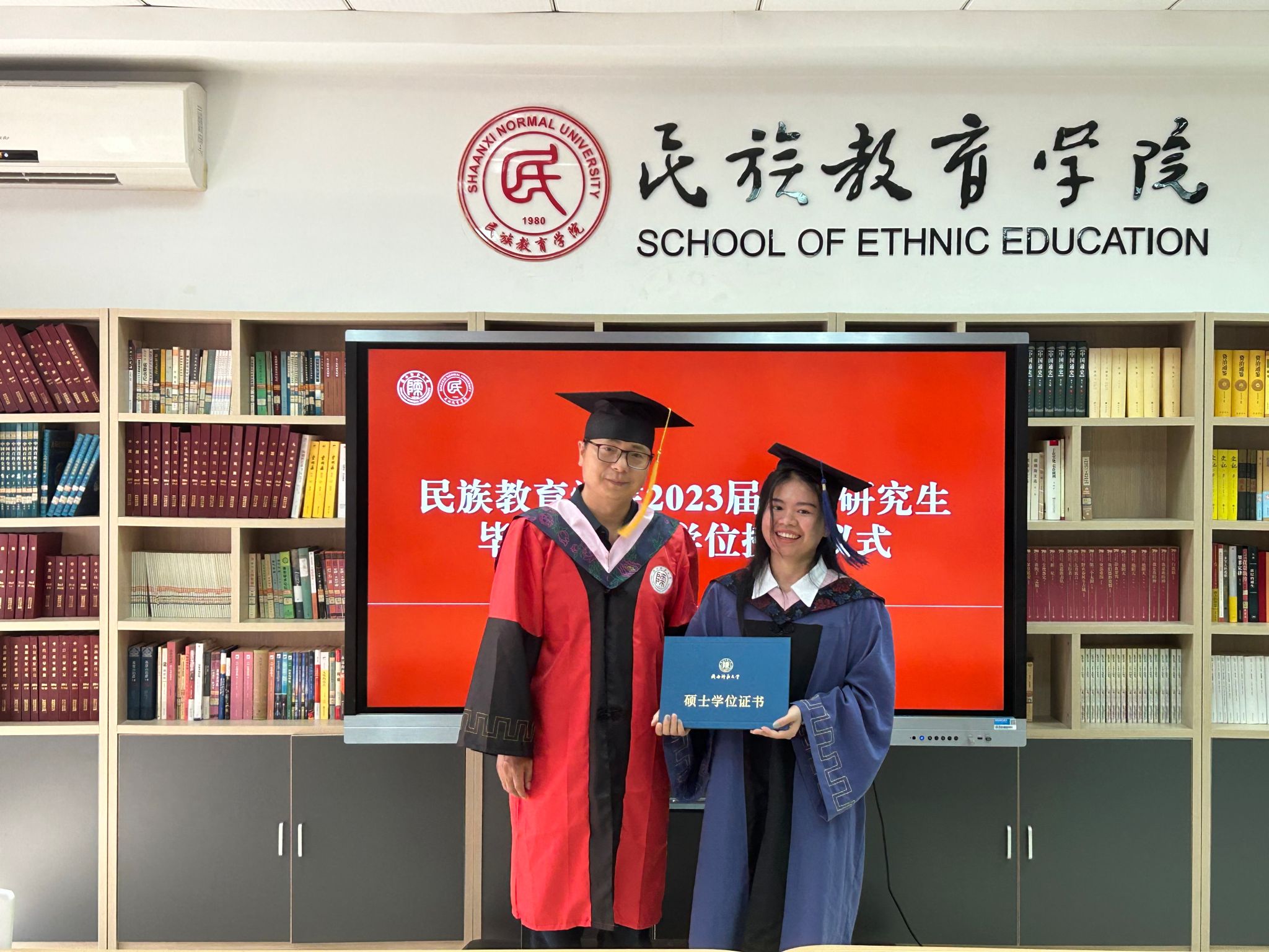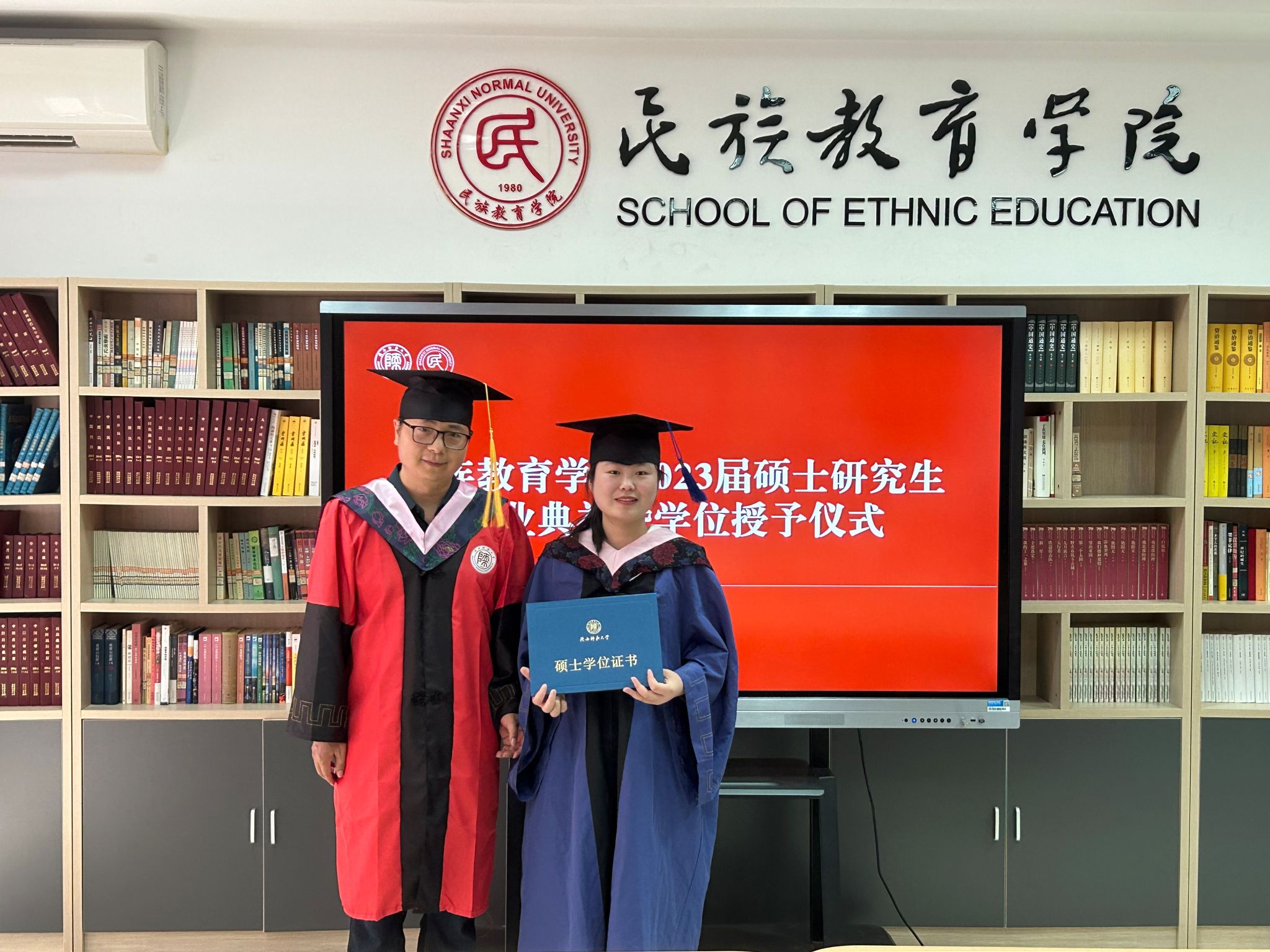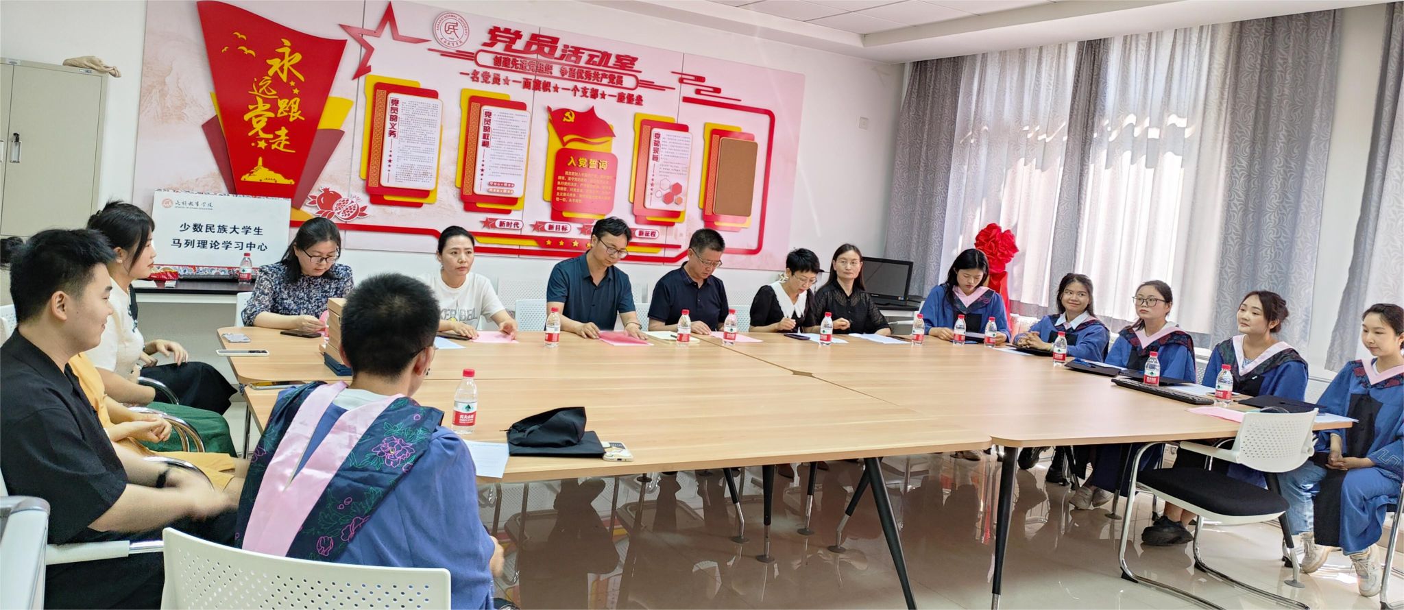 2023年6月29日上午10:00,威廉希尔williamhill民族教育公司2023届硕士研究生毕业典礼暨学位授予仪式在雁塔校区六附楼305会议室举行。公司党总支书记郑生忠、学术委员会主任、经理、党总支副书记龙宝新、学术委员会副主任戴妍及毕业生导师代表卢静、成珊娜、萨仁娜出席了本次典礼。毕业典礼由公司党总支组织员、团总支书记、研究生专职辅导员热依木·努尔麦麦提主持,公司2023届毕业研究生和2021级研究生到场参加。