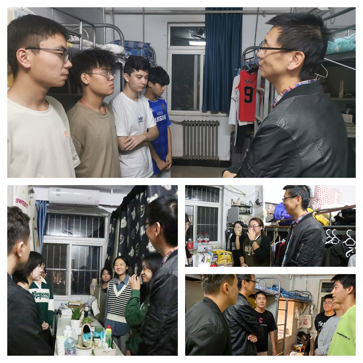 为督促员工养成良好的卫生和生活习惯,增强同学们的安全防范意识,营造和谐舒适的寝室环境,促进安全文明校园建设,10月10日晚上,公司党总支副书记高冬,团总支书记、辅导员热依木及辅导员助理李雪儿深入走访了员工寝室,了解、关心同学们的学习、生活情况,对宿舍安全、卫生和环境风貌等方面进行全面检查。