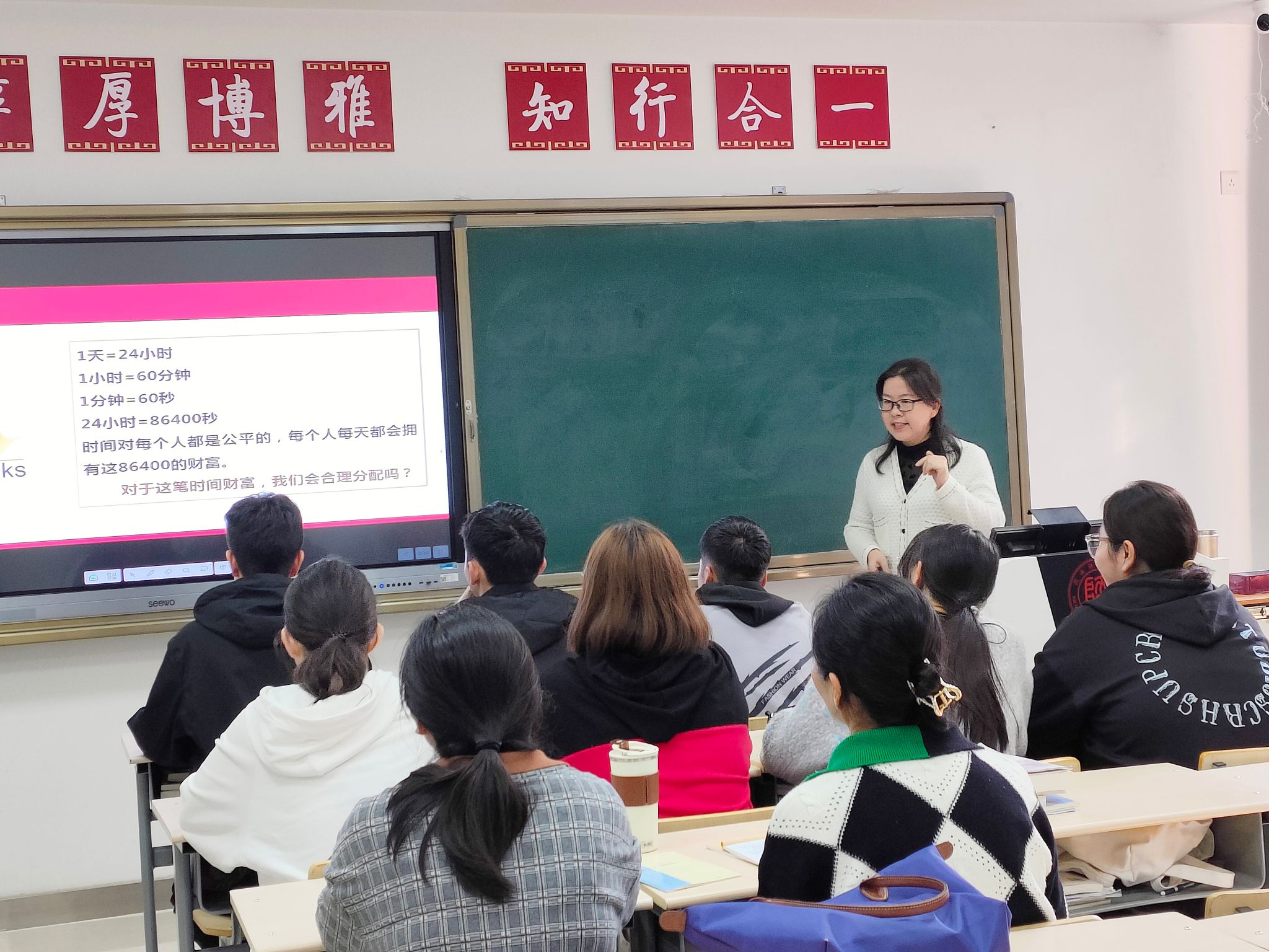在此次教学示范课上,戴老师以《玩转“四象限法”成为时间达人——时间管理》为授课内容,展示了她的教学风采。戴老师巧妙运用猜谜的方式引入了时间银行概念,并通过撕纸条这一互动游戏带领员工感受“人的一生有多长”以及在除去吃饭、睡觉等日常琐事后,每天剩余的时间是如此短暂,引导员工珍惜人生时光。这种互动的教学方式不仅吸引了员工的注意力,更加激发了员工学习的积极性。在授课过程中,戴老师着重于时间管理四象限法进行讲解,教学内容重点突出,并结合员工日常生活进行举例,课堂讲授与启发思考相结合、教学目标与思政目标相结合,呈现出完整的课堂教学结构,课堂效果甚佳。