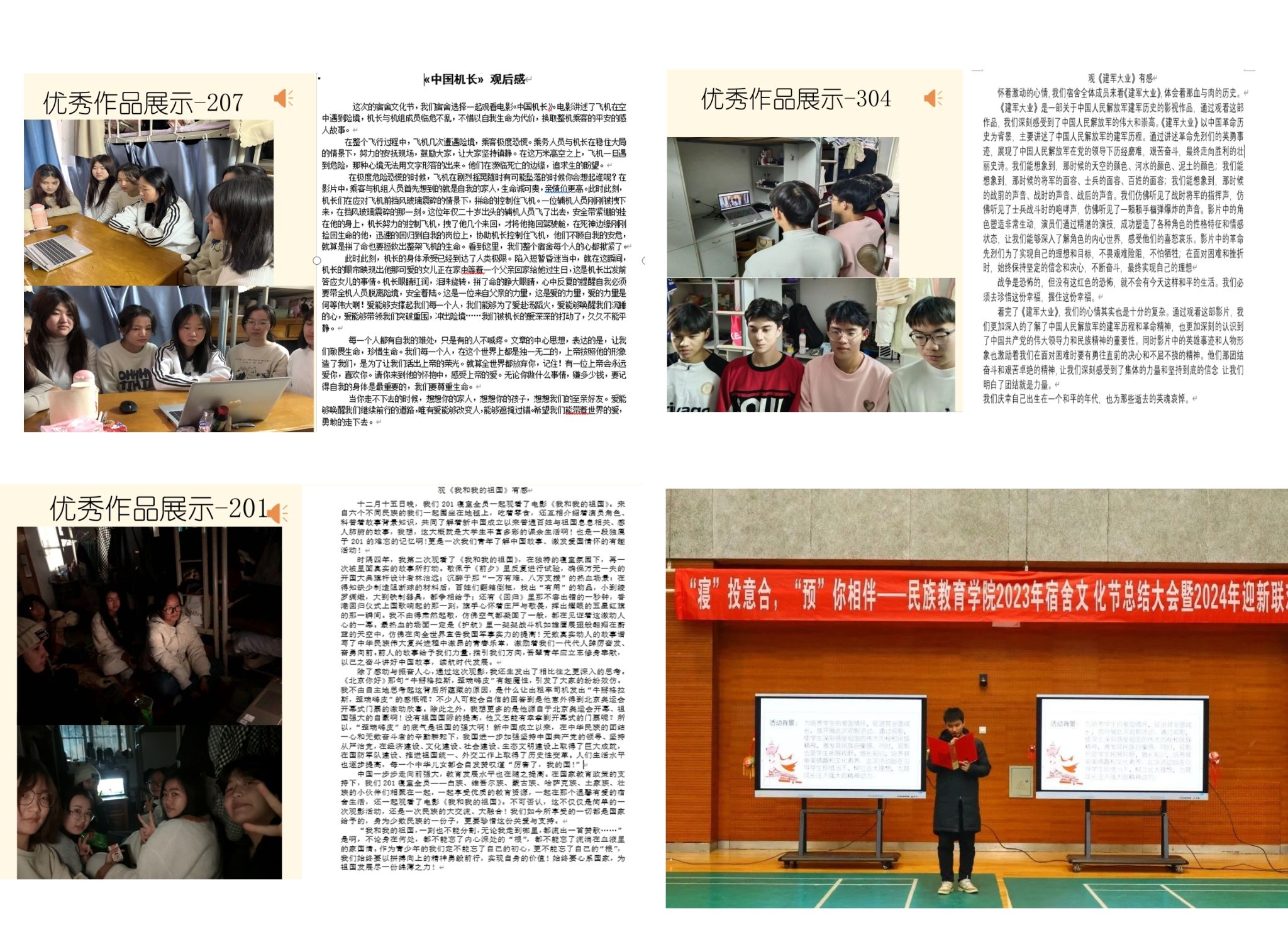 建校园于景,树寝室于静,宿舍无疑是我们员工的第二个“家”。在此次宿舍文化节活动中,我们以铸牢中华民族共同体意识为主线,丰富中华民族共同体内涵,有效提升员工的宿舍生活质量和校园学习幸福感,更增进室友情感,促进各民族员工的交往交流交融。在新一年里,希望大家能够携手共进,唱响民族团结的主旋律,珍惜难得而有限的预科时光,谱写出青春的最美篇章。同时,新的一年在公司党总支的正确领导下,团总支的悉心指导下,全体员工勤勉奋进,不断提升自我实力,用热血与热情将为自己的预科生活画上圆满的句号。