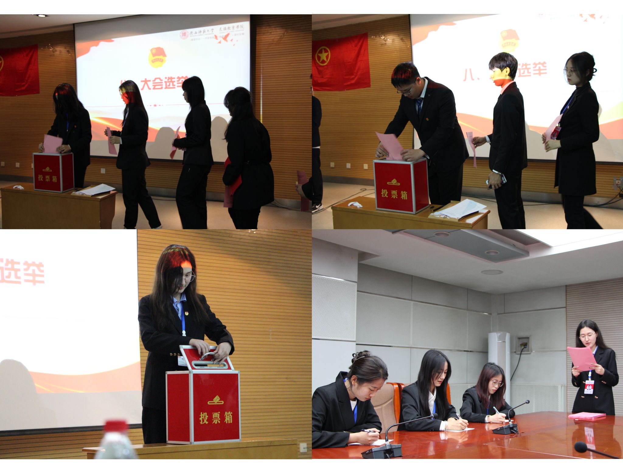 3、 会议中,参会同学审议并通过了《关于通过员工委员会工作报告的决议》《正式大会选举办法》《关于提案工作报告的决议》,选举产生了第四届员工委员会委员。